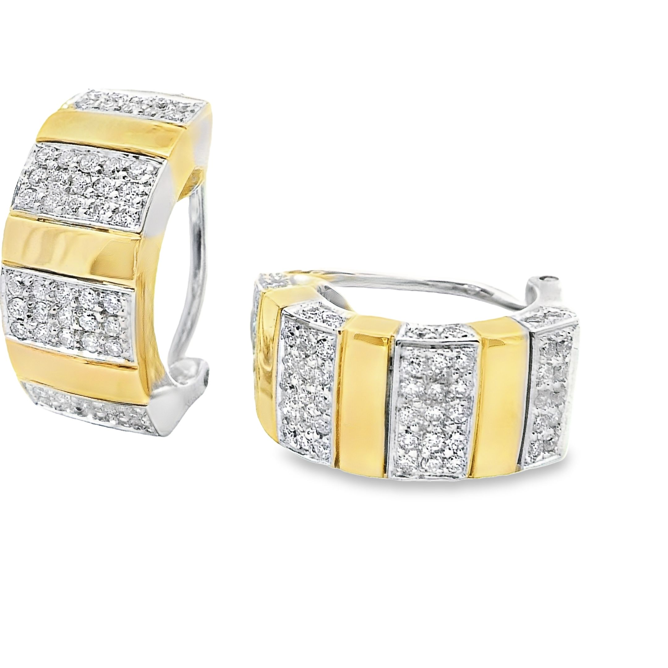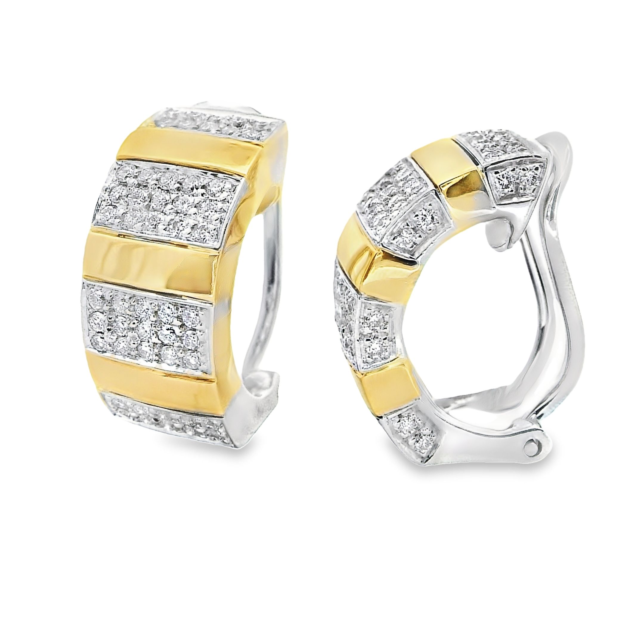 Deze exclusieve oorclips van Louis Bros zijn vervaardigd uit 18 karaat bicolor (12.38 gr.) en zijn gezet met 92 briljant geslepen diamanten met een totaalgewicht van 0.92 crt. De Oorsieraden hebben een diameter van 18.5 mm en een breedte van 8.5 mm. Deze oorclips vrolijken iedere outfit op. En eindeloos te combineren met andere gouden sieraden.