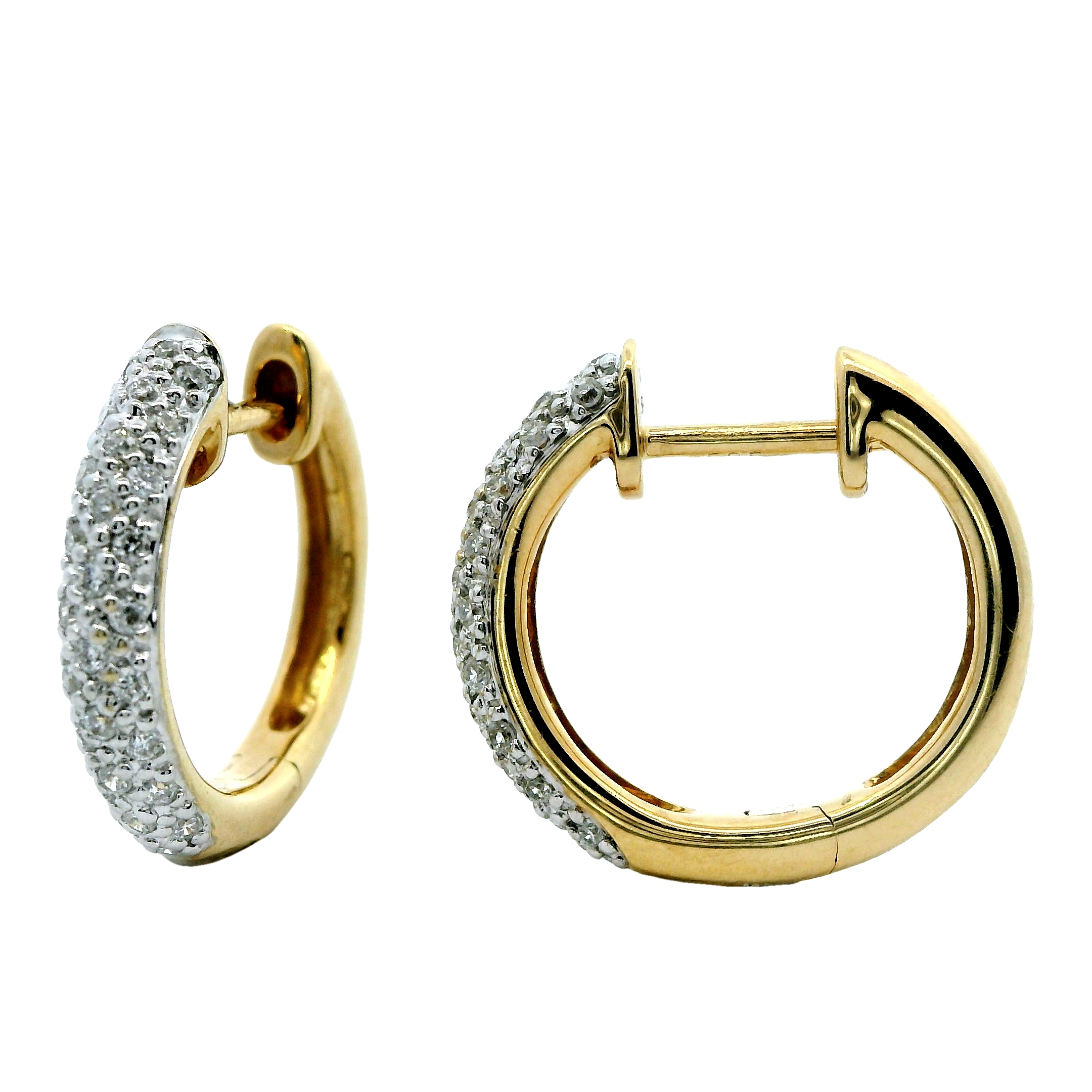 Deze oorringen van Louis Bros zijn vervaardigd uit 14 karaat bicolor (3.40 gr.) en zijn gezet met 56 briljant geslepen diamanten met een totaalgewicht van 0.25crt.