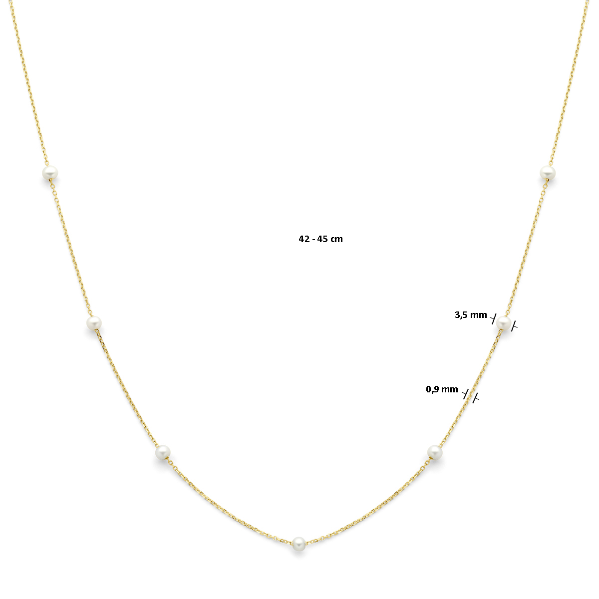 14k Geelgouden collier uitgevoerd met zoetwaterparels. Het collier heeft draaglengtes van 42-45cm.