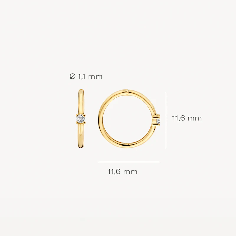 Deze prachtige oorbellen zijn gemaakt van 14 karaat geelgoud en zijn voorzien van zirconia stenen voor een subtiele sprankeling. De oorbellen hebben een tijdloos design en zijn perfect voor zowel alledaagse als feestelijke gelegenheden. Draag ze solo voor een subtiele look of combineer ze met andere gouden sieraden voor een luxe uitstraling. Deze oorbellen zijn een echte toevoeging aan je sieradencollectie.
