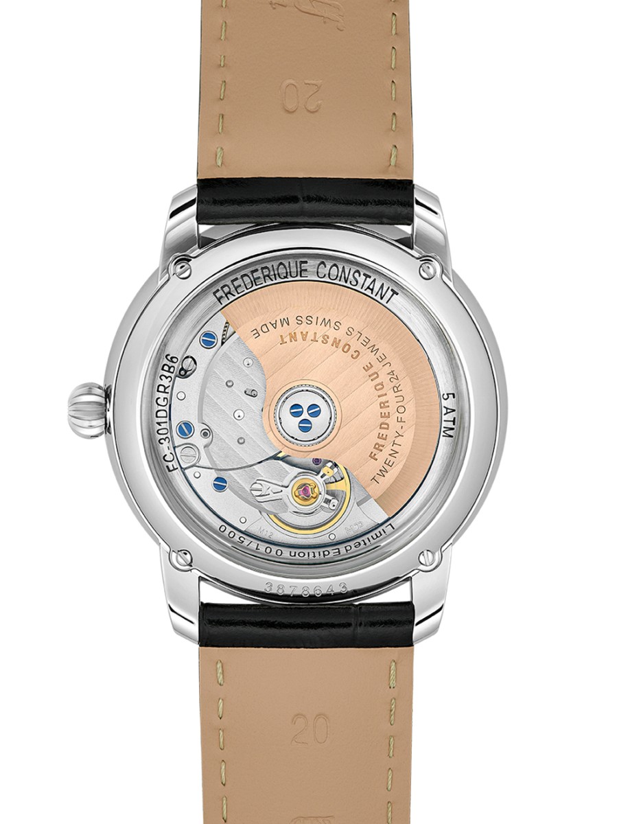 Dit herenhorloge van Frederique Constant is onderdeel van de Classics Premiere collectie. De horloges in deze serie kenmerken zich door hun klassieke, tijdloze uiterlijk met een hedendaagse twist. Alle horloges hebben een krasarm saffierglas en zijn tot 50 meter waterdicht afgesloten. De FC-301DGR3B6 is een gelimiteerd model. Het merk heeft 500 exemplaren uitgegeven.
