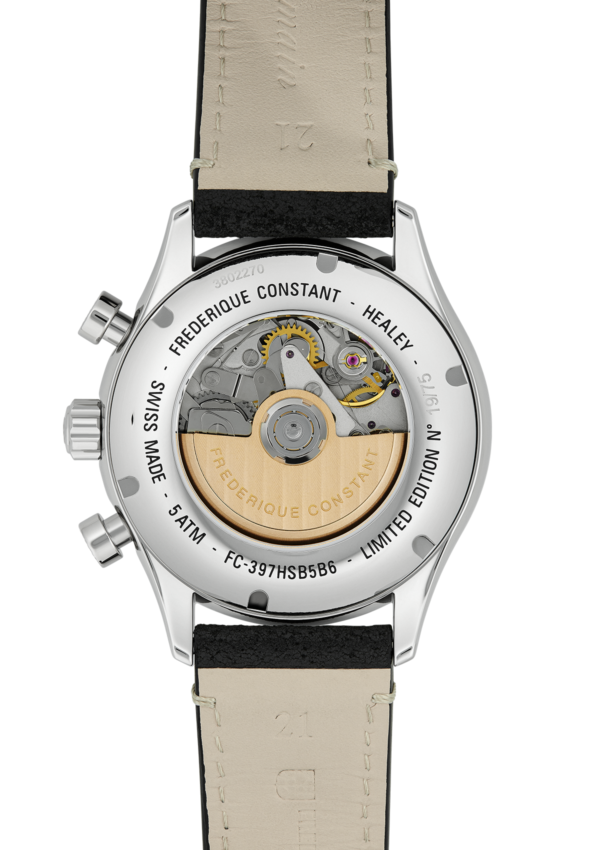 Dit Frederique Constant Vintage Rally herenhorloge is bekend onder Frederique Constant-referentienummer FC-397HSB5B6. Het horloge heeft een mechanisch uurwerk met automatische opwindfunctie dat geplaatst is in een edelstalen kast. Op de witte zwarte wijzerplaat is analoge tijdsweergave zichtbaar. Aan de kast zit een zwarte lederen horlogeband met een doorn- / gespsluiting.