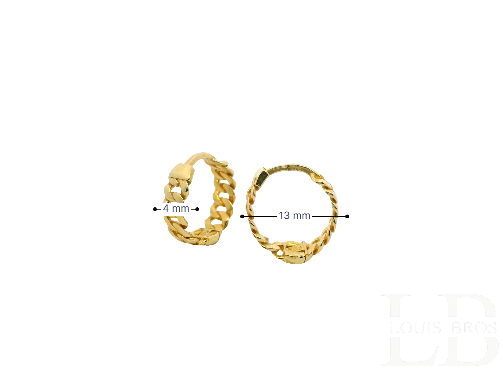 Deze stijlvolle 14-karaat geelgouden oorringen (2.61 gr) zijn ontworpen in een trendy chain-stijl, wat ze een moderne en luxueuze uitstraling geeft. De schakels van de ring zijn elegant met elkaar verbonden, waardoor de oorbellen een speelse maar verfijnde look krijgen.