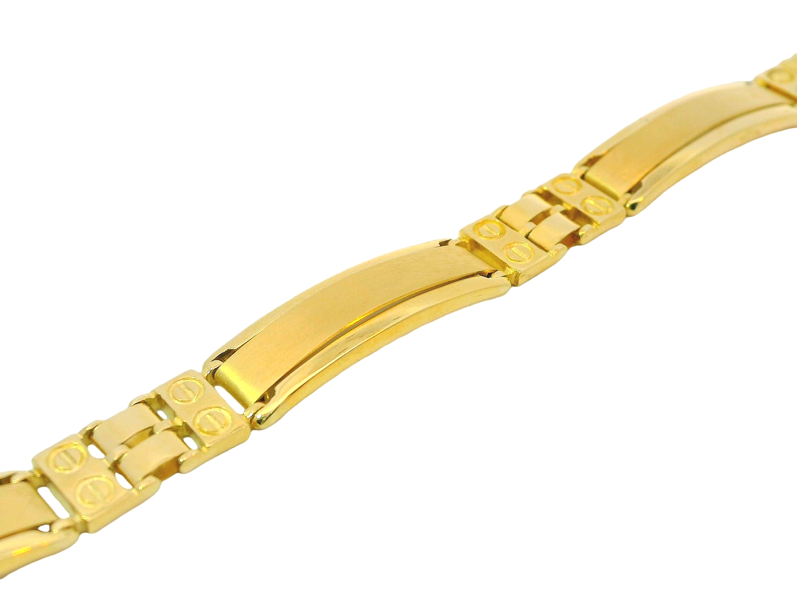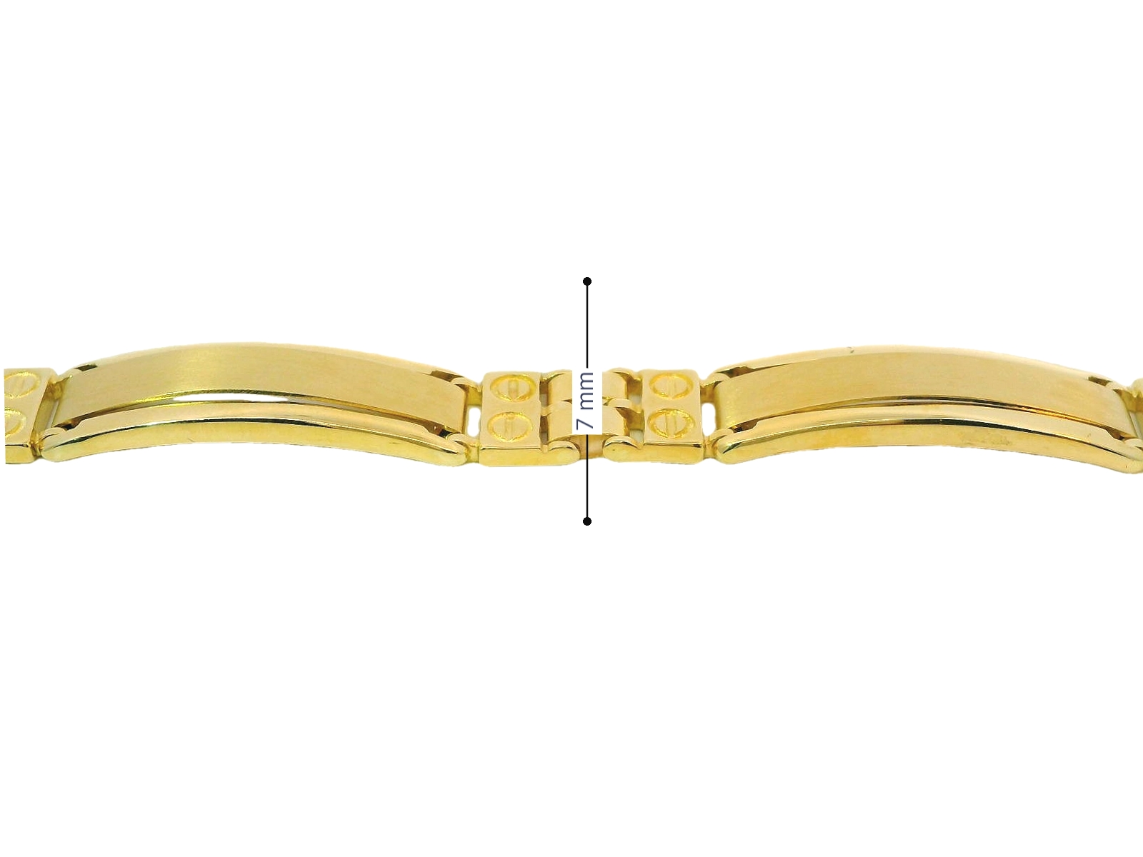 Deze armband voor heren straalt luxe en verfijning uit. Gemaakt van hoogwaardig 14-karaats goud, heeft de armband een tijdloos en mannelijk ontwerp dat perfect is voor elke gelegenheid. De stevige schakels en strakke afwerking zorgen voor een robuuste uitstraling, terwijl het klassieke ontwerp moeiteloos te combineren is met elke stijl. Een perfecte keuze voor de man die waarde hecht aan kwaliteit en elegantie in zijn accessoires.