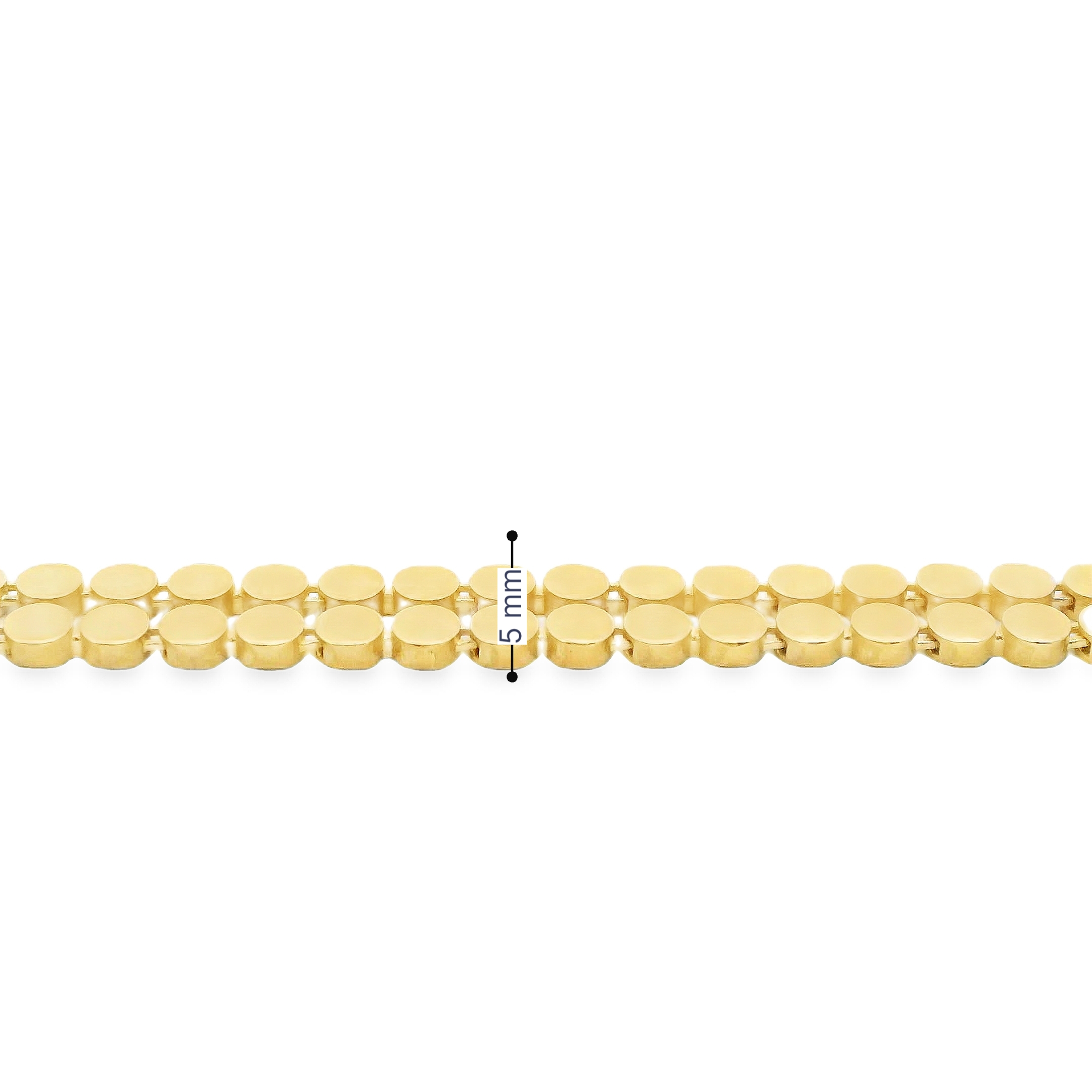 Deze tijdloze armband straalt elegantie en verfijning uit. Met zijn warme, rijke kleur en klassieke uitstraling past deze armband bij elke gelegenheid. Of je nu kiest voor een eenvoudig, subtiel ontwerp of een gedetailleerde, verfijnde afwerking, een geelgouden armband blijft een blijvend stijlvol accessoire. Het duurzame materiaal en de tijdloze schoonheid maken het tot een waardevol sieraad dat generaties lang kan worden doorgegeven. Deze armband voegt een vleugje luxe toe aan elke outfit en benadrukt de persoonlijke stijl van de drager.