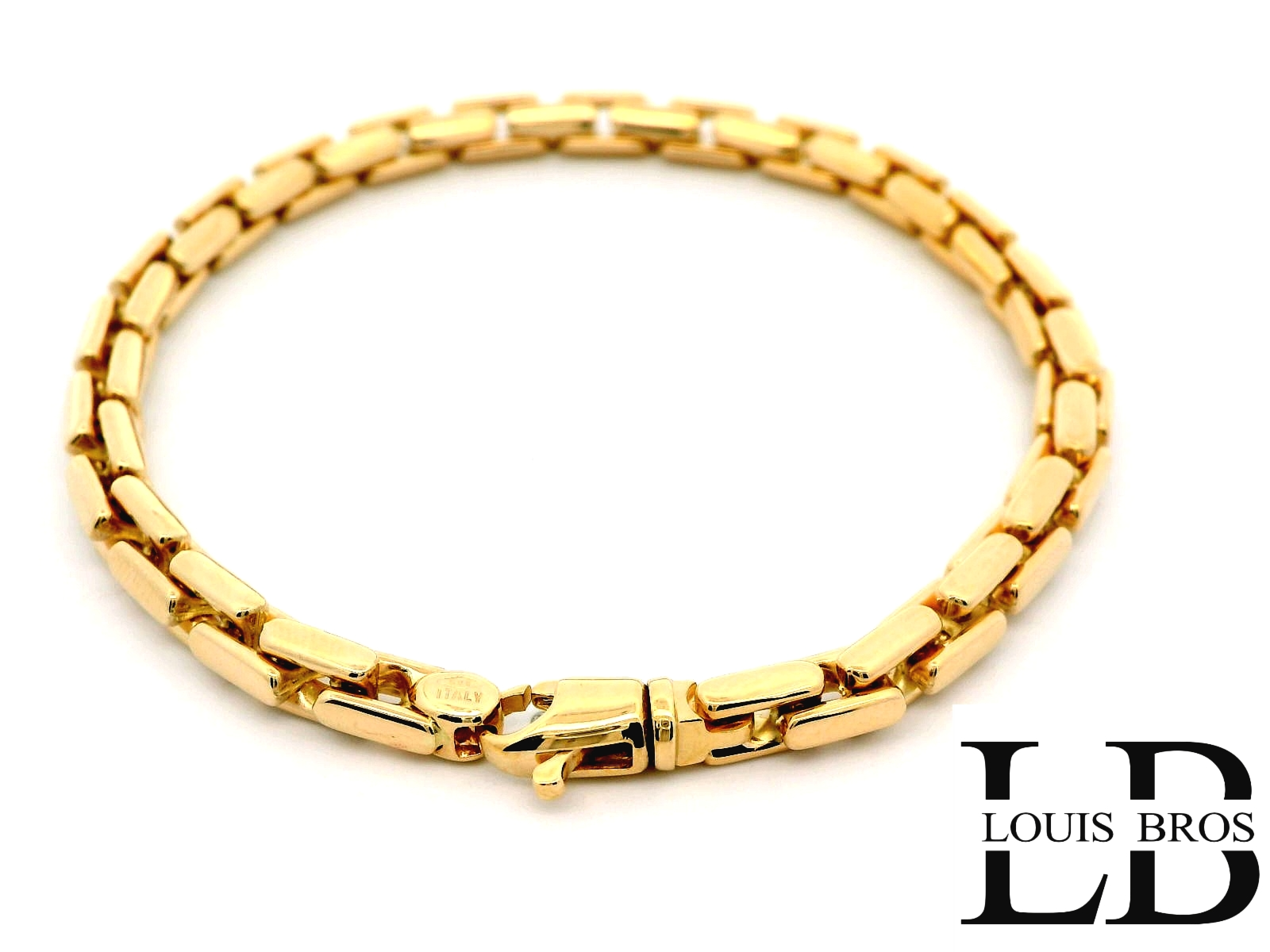 Deze geelgouden armband van 14 karaat (12.64 gr) straalt luxe en elegantie uit. Het verfijnde schakelontwerp geeft de armband een chique en tijdloze uitstraling, terwijl de warme glans van het goud zorgt voor een klassieke en stijlvolle afwerking.