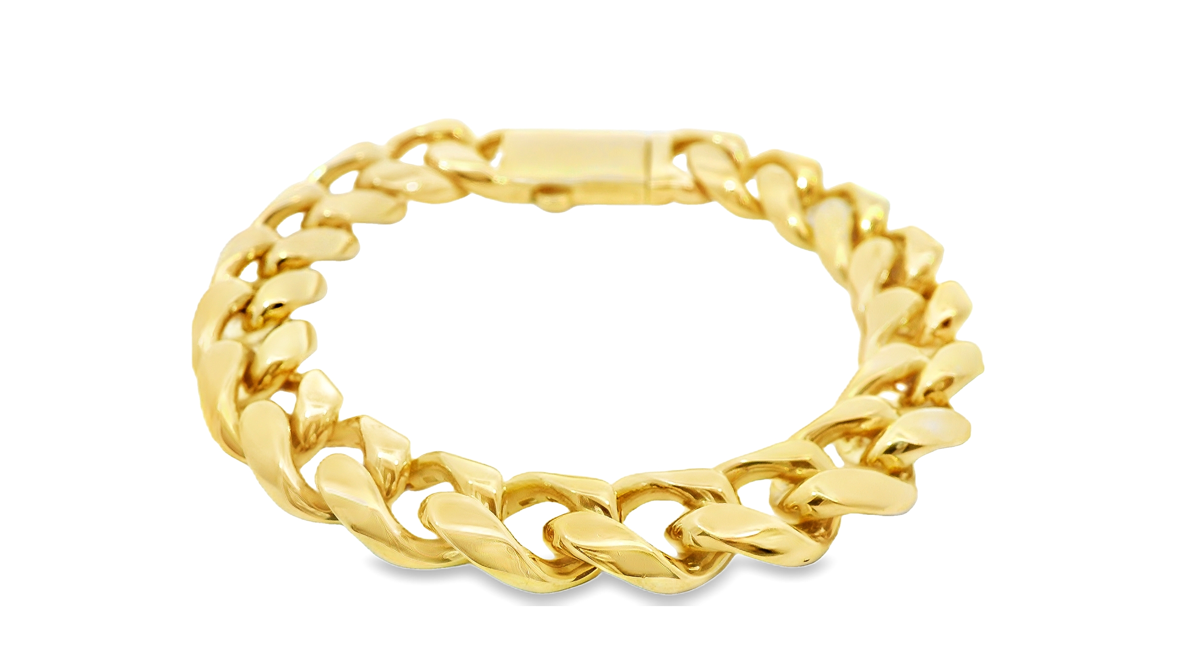 De armband is voorzien van een stevige en veilige sluiting, wat zorgt voor een comfortabele en zorgeloze draagervaring. Het hoogglans gepolijste oppervlak reflecteert het licht prachtig, waardoor de armband een luxe uitstraling krijgt. Dit sieraad is perfect om solo te dragen of te combineren met andere gouden sieraden voor een extra stijlvolle touch.