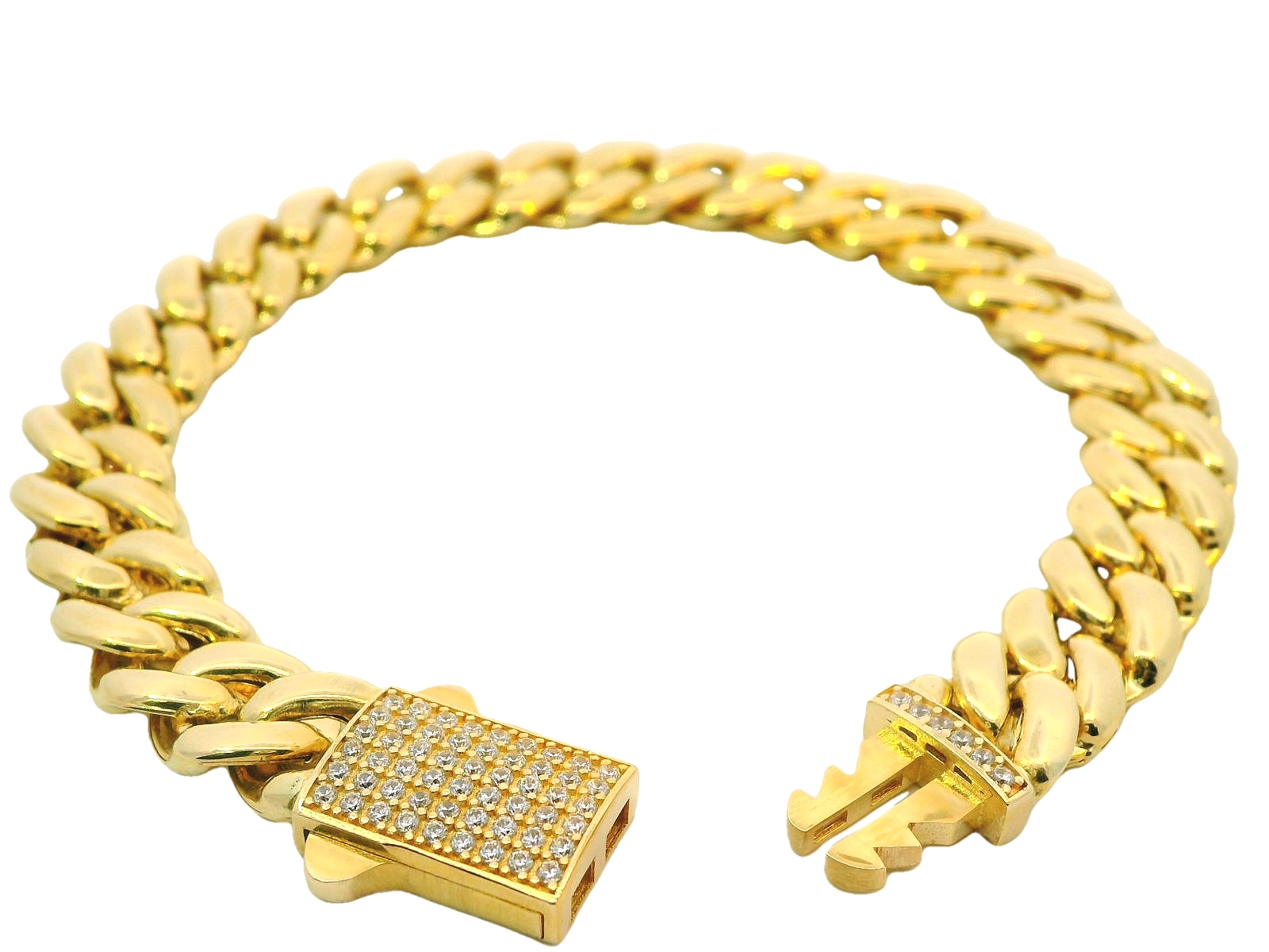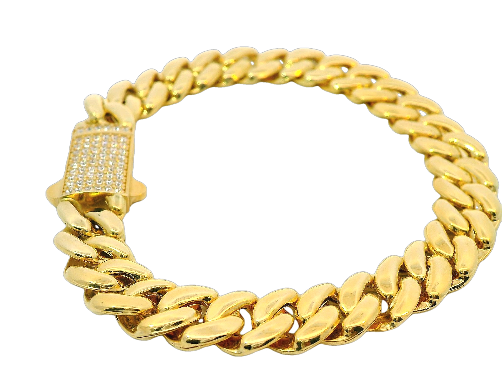 Deze luxe armband voor heren is verfijnd afgewerkt met fonkelende zirkonia-stenen, wat een subtiel maar stijlvol accent toevoegt. De stevige schakels stralen kracht uit, terwijl de zirkonia zorgt voor een schitterend contrast en een vleugje elegantie. Dit sieraad is perfect voor de man die houdt van een combinatie van luxe en tijdloze klasse. De geelgouden afwerking in combinatie met de glinsterende zirkonia maakt deze armband tot een echte blikvanger, geschikt voor zowel dagelijks gebruik als speciale gelegenheden.