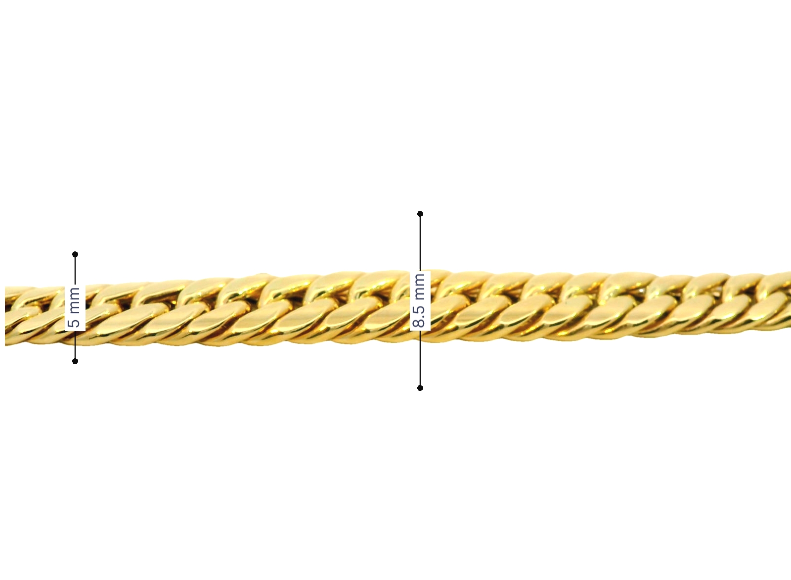 Deze prachtige geelgouden armband van 14 karaat (8.98 gr) is van het gourmet model en geschikt voor zowel mannen als vrouwen. Het is voorzien van een subtiele en tijdloze uitstraling. De armband is perfect te combineren met zowel casual als formele outfits en voegt een vleugje elegantie toe aan elke look. Draag hem los om de pols voor een stijlvolle uitstraling.