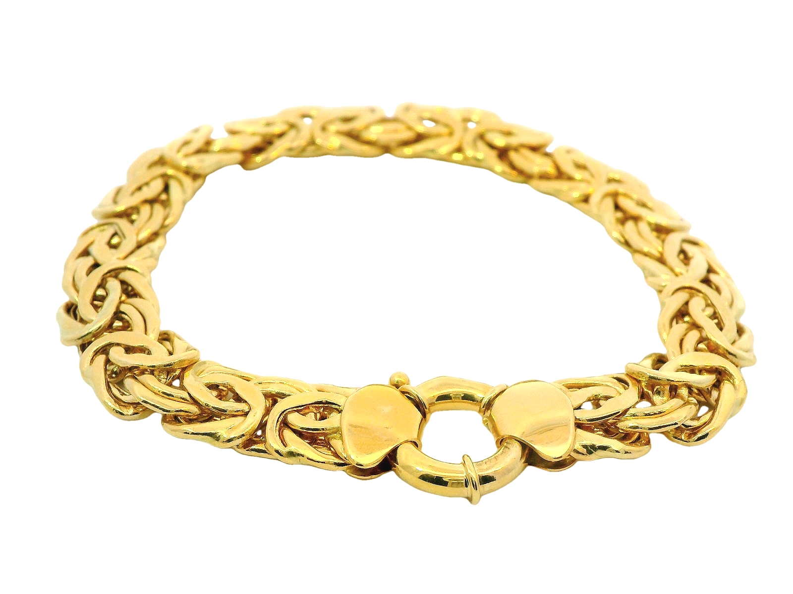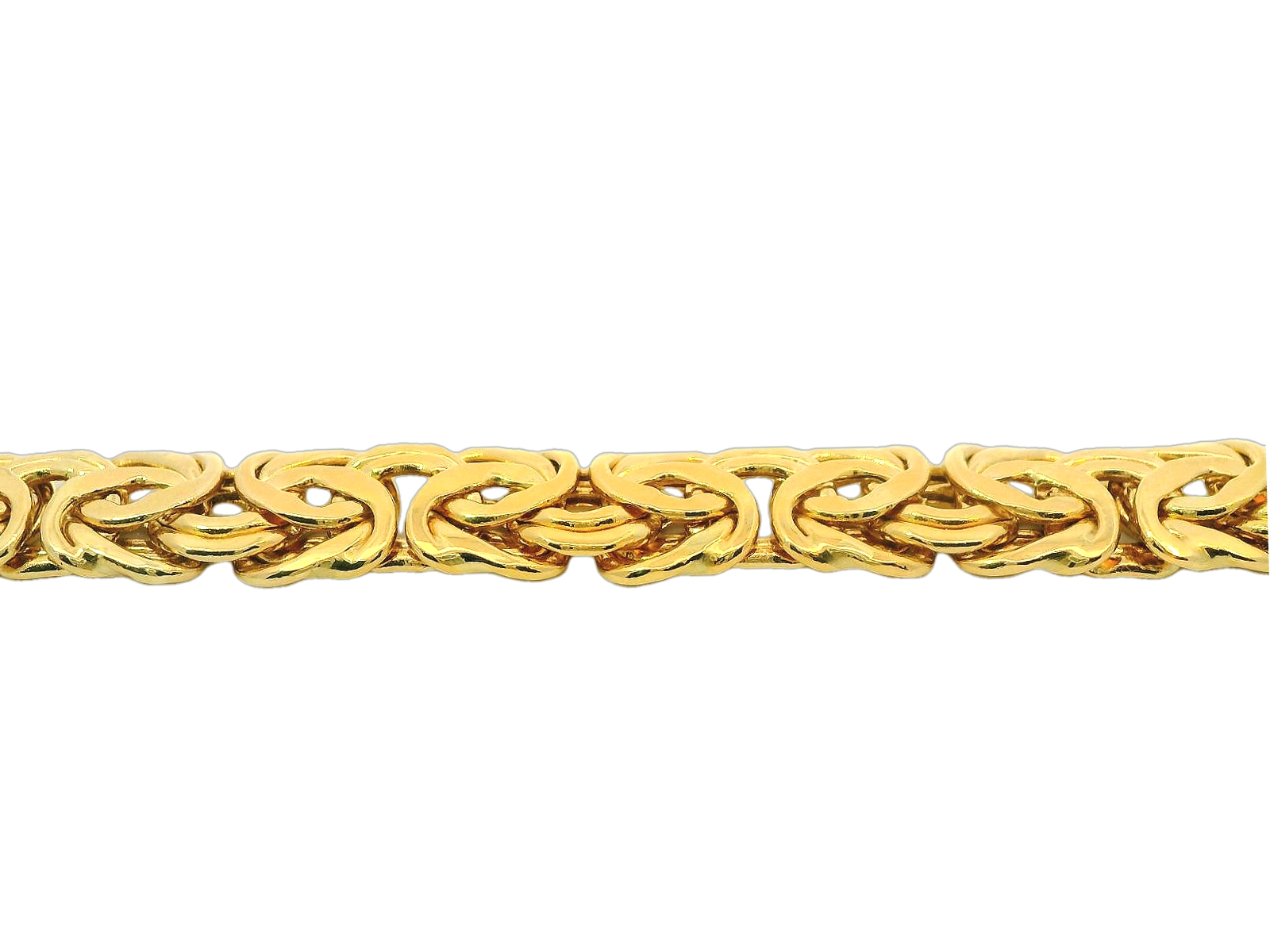 Deze luxe herenarmband is uitgevoerd in een platte koningsschakel, een tijdloos ontwerp dat kracht en verfijning combineert. De stevige schakels zijn nauwkeurig met elkaar verweven, wat zorgt voor een robuuste en elegante uitstraling. De platte koningsschakel staat bekend om zijn rijke textuur en gedetailleerde afwerking, waardoor deze armband een echte eyecatcher is. Perfect voor de man die een klassiek en stijlvol sieraad zoekt dat moeiteloos elke look naar een hoger niveau tilt.