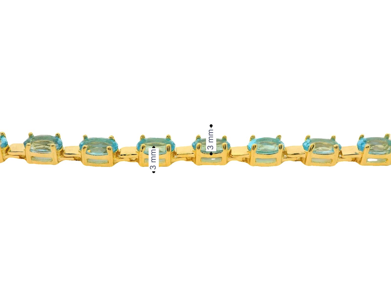 Deze prachtige geelgouden armband van 14 karaat met lichtblauwe steentjes is een uniek sieraad dat direct opvalt. De combinatie van het goud en de blauwe steentjes zorgt voor een elegante uitstraling die perfect is voor zowel overdag als 's avonds. Draag deze armband alleen voor een subtiele touch of combineer met andere armbanden voor een echte statement look. Met een verstelbare sluiting past deze armband om bijna elke pols. Maak je outfit compleet met deze prachtige armband!