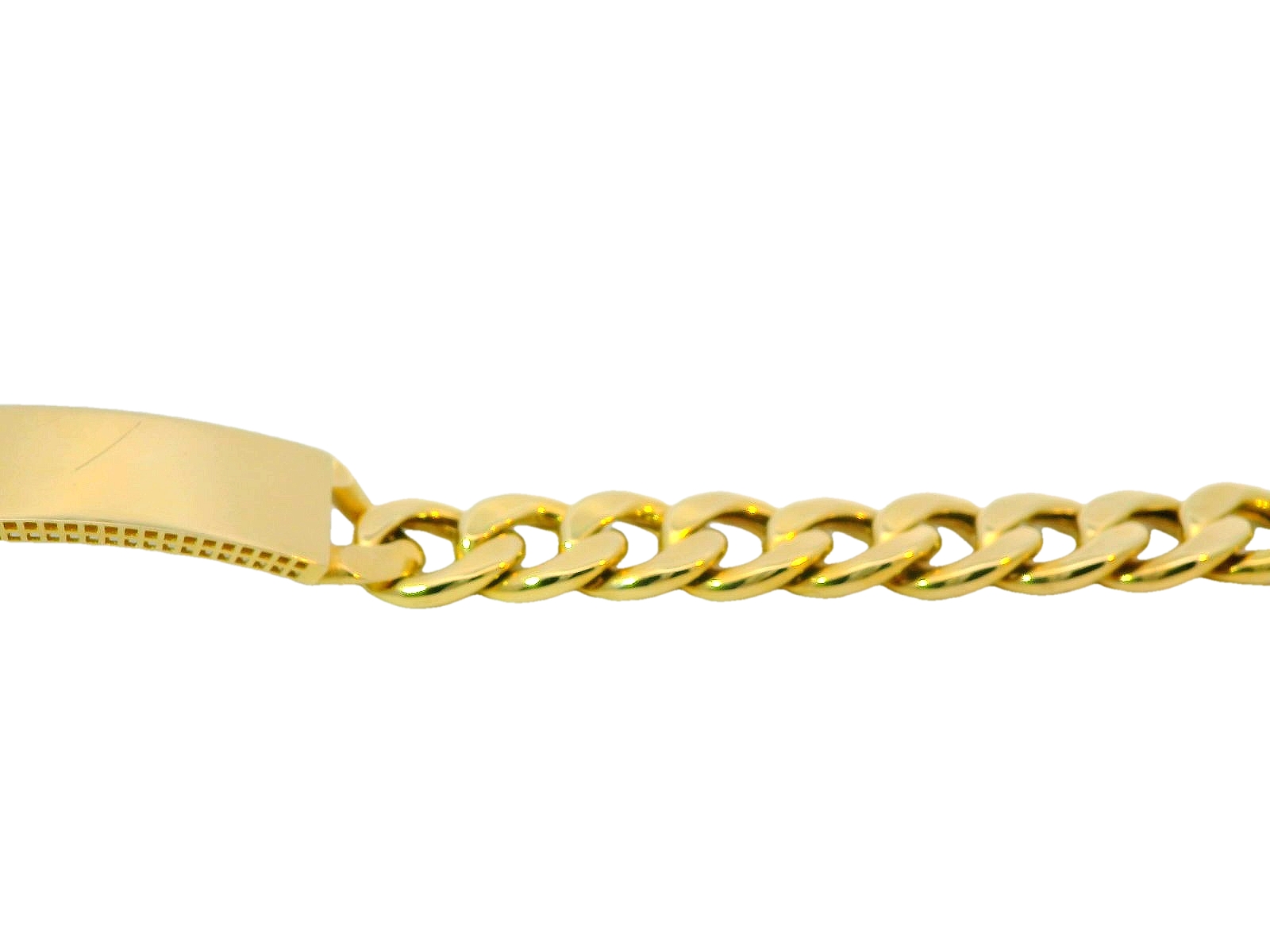 Deze gourmet armband voor heren combineert stijl en persoonlijkheid. Gemaakt van 14-karaats goud, straalt de armband luxe en duurzaamheid uit. Het robuuste gourmet design met stevige, verweven schakels zorgt voor een stoere en tijdloze uitstraling. Het centrale graveerplaatje biedt de mogelijkheid om de armband een persoonlijke touch te geven, bijvoorbeeld met een naam of initialen. Een perfecte accessoire voor de man die zijn stijl wil verfijnen met een elegant en gepersonaliseerd sieraad.
