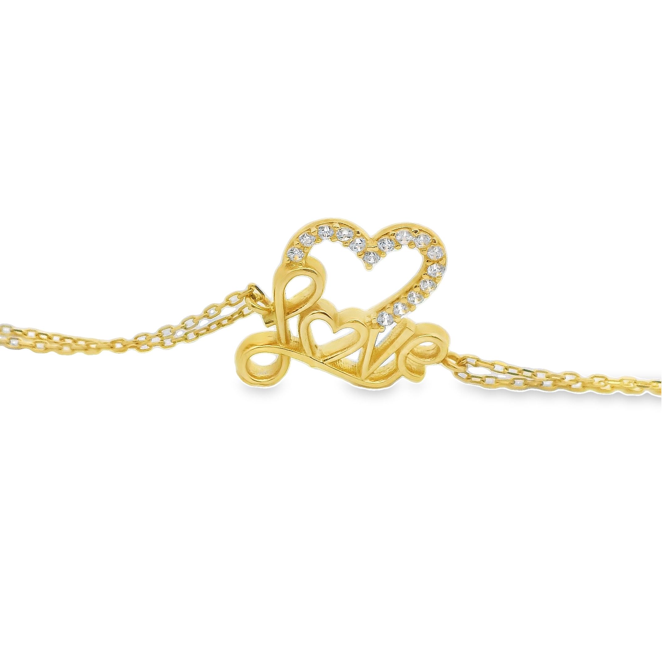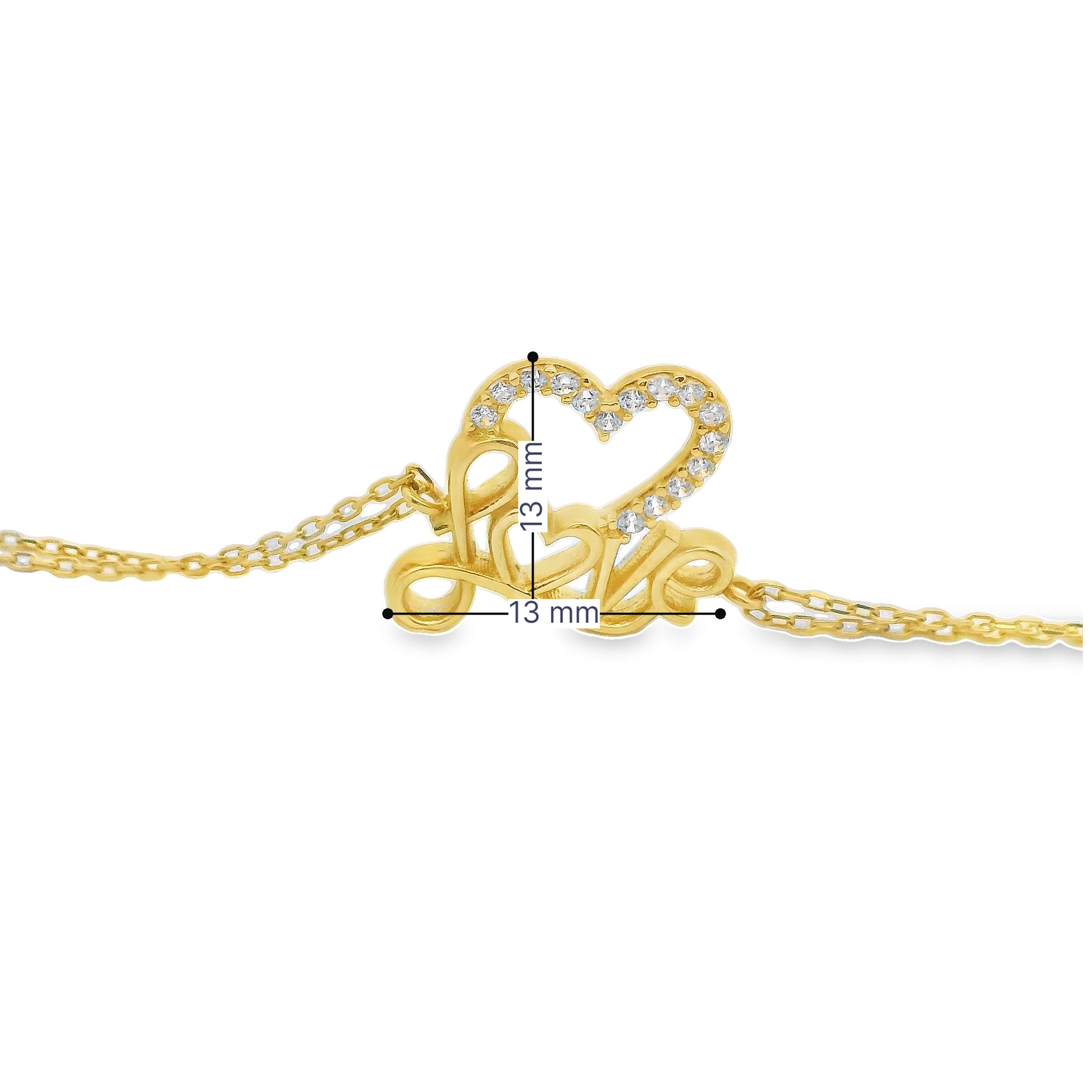Deze elegante armband van Louis Bros is vervaardigd uit 14 karaat geelgoud (2.60 gr). Het hoogtepunt van het ontwerp is een prachtig zirkonia hartje, bezet met fonkelende stenen die een vleugje glamour toevoegen. Het hartje is subtiel gegraveerd met het woord "love", wat een romantisch en persoonlijk accent geeft aan dit sieraad. Perfect als geschenk voor een geliefde of om jezelf te verwennen, deze armband combineert tijdloze elegantie met een moderne touch. Draag het solo voor een subtiele uitstraling of combineer het met andere sieraden voor een trendy look.