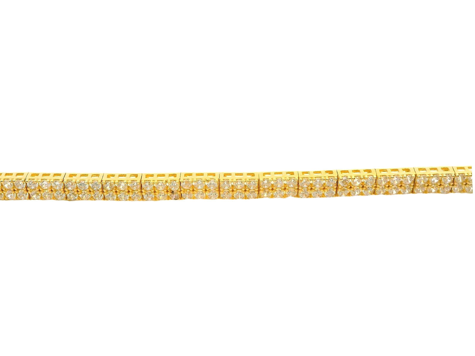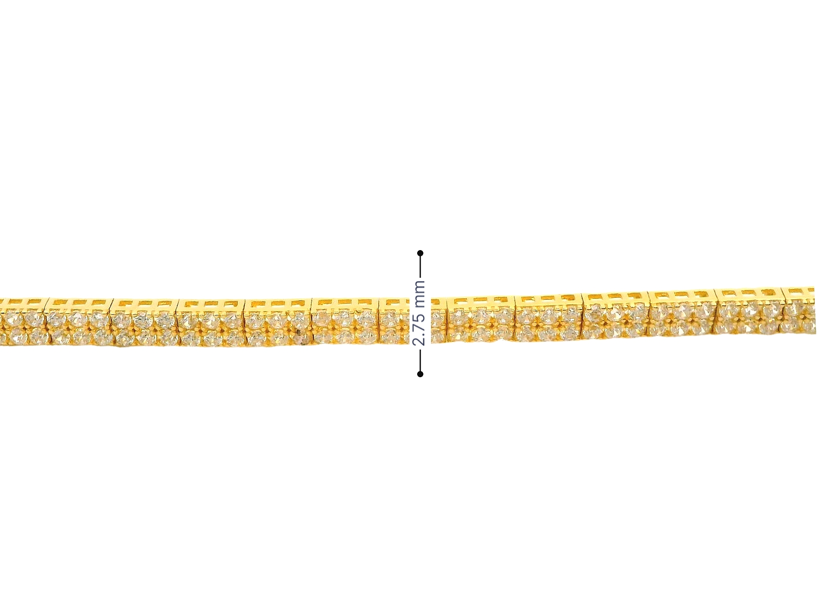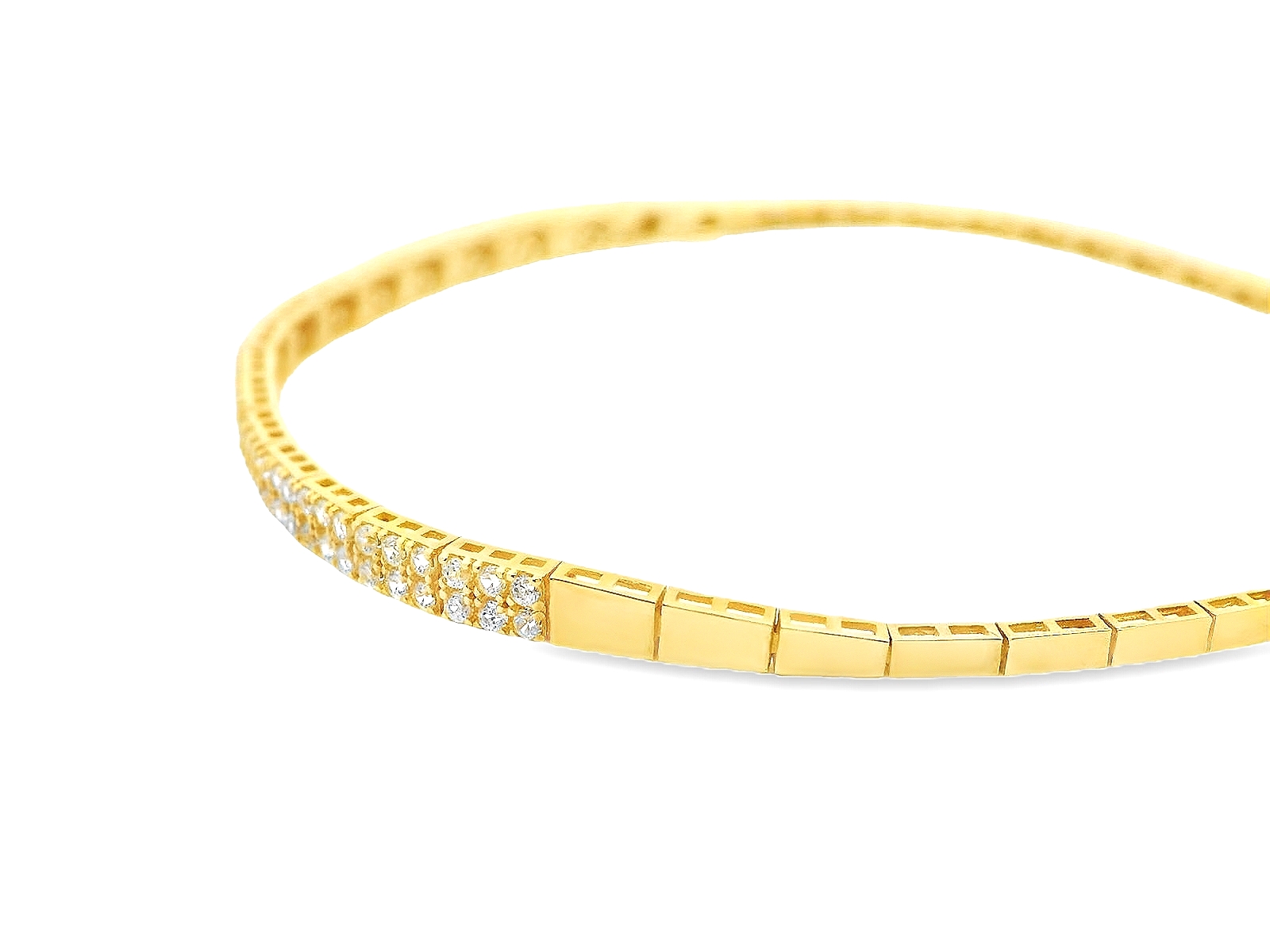 Deze armband met zirkonia's straalt elegantie en verfijning uit. Het prachtige geelgoud accentueert de schittering van de fonkelende zirkonia's, die subtiel in het ontwerp zijn verwerkt. De armband heeft een speels en uniek design, waardoor het een blikvanger is bij elke outfit. Het tijdloze karakter van het geelgoud gecombineerd met de sprankelende zirkonia's maakt deze armband perfect voor elke gelegenheid, of het nu een dagelijks accessoire is of een sieraad voor speciale momenten.