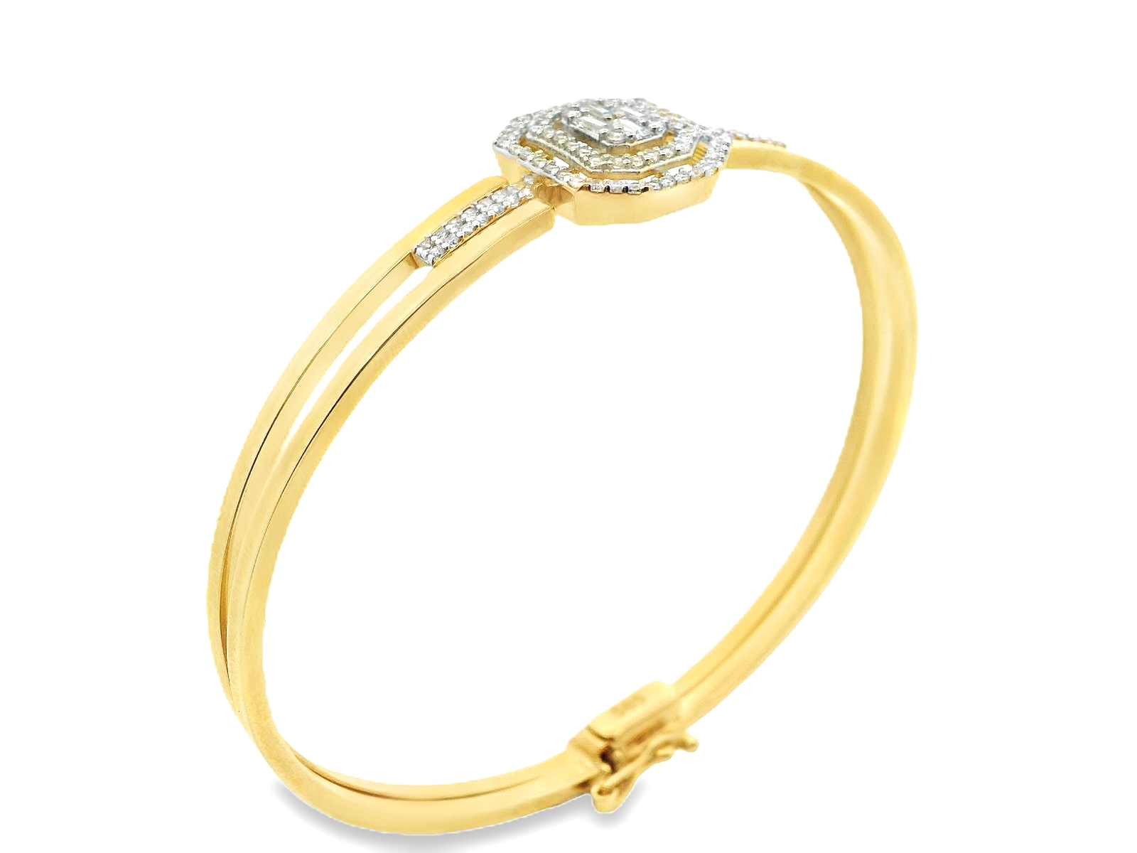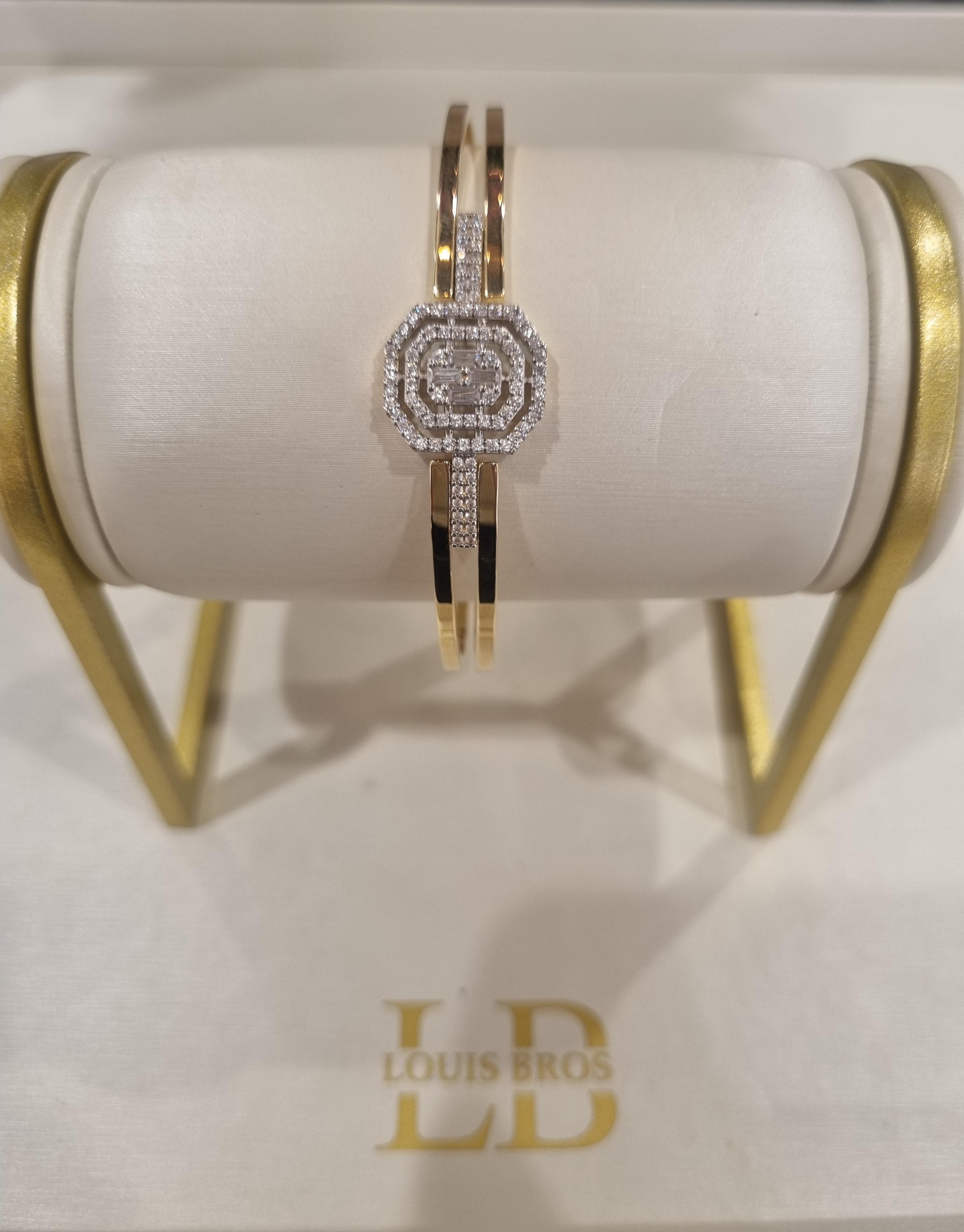 Deze armband van Louis Bros is vervaardigd uit 14 karaat geelgoud met wit rhodium (7.14 gr.). Deze armband is echt een plaatje aan de vrouwenpols, tijdloos, draagbaar is voor dagelijks gebruik en voor speciale gelegenheden.