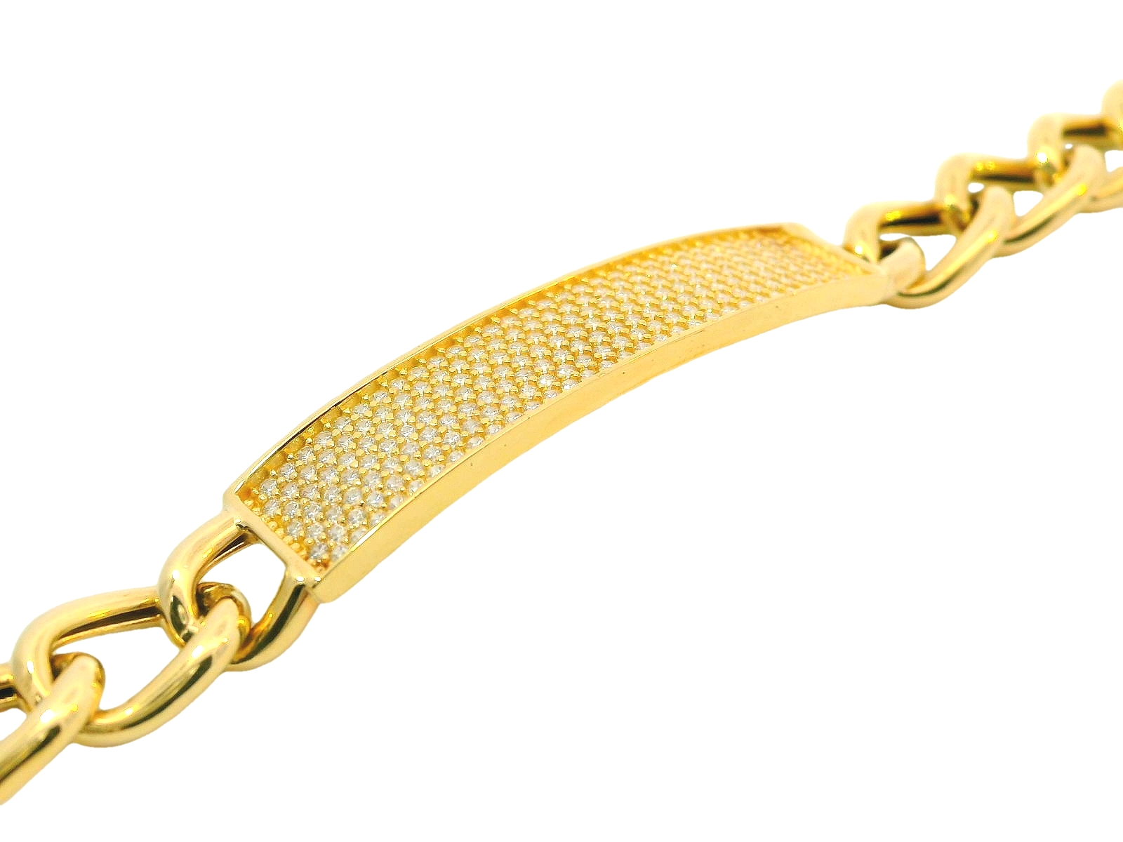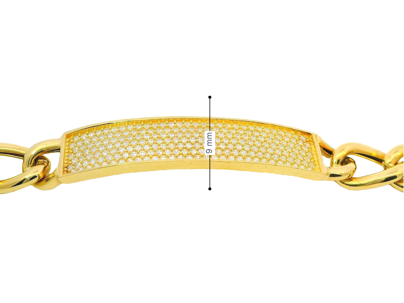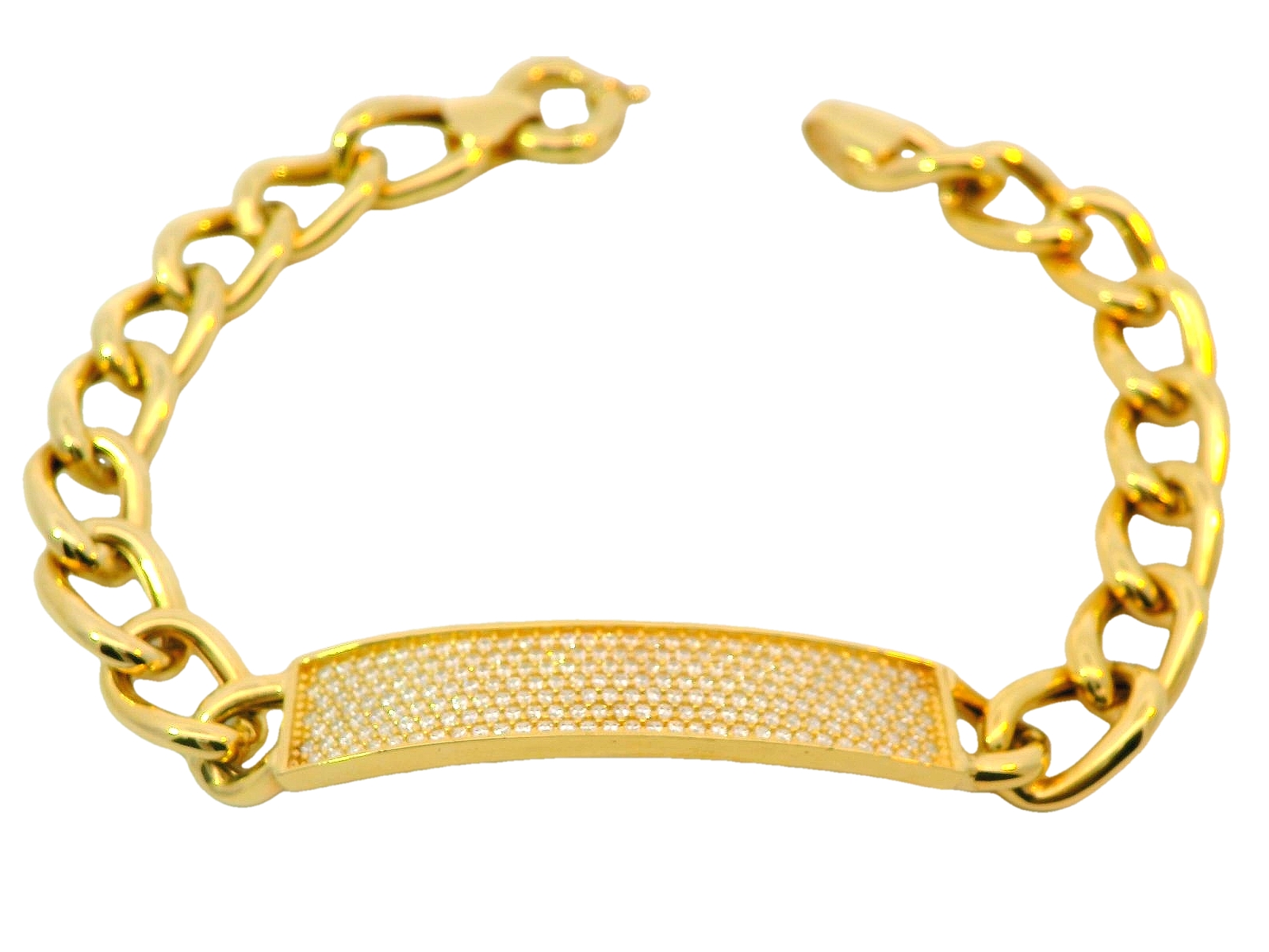 Deze armband voor heren met zirkonia's is een combinatie van luxe en verfijning. Gemaakt van 14-karaats geelgoud, straalt de armband elegantie uit, terwijl de fonkelende zirkonia's een vleugje glamour toevoegen. Het robuuste ontwerp maakt deze armband ideaal voor de moderne man die houdt van een stijlvol en opvallend sieraad. Perfect voor zowel dagelijkse outfits als speciale gelegenheden, biedt deze armband een schitterende balans tussen mannelijkheid en verfijnde details.