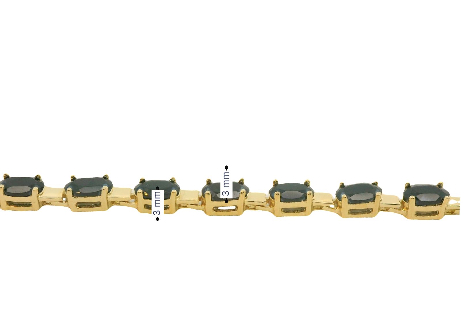 Deze prachtige armband is gemaakt van 14 karaat geelgoud en heeft een uniek ontwerp met zwarte onyx stenen. De armband is speciaal ontworpen voor dames en geeft elke outfit een luxe uitstraling. Draag deze armband alleen voor een chique look of combineer hem met andere gouden sieraden voor een verfijnde uitstraling.