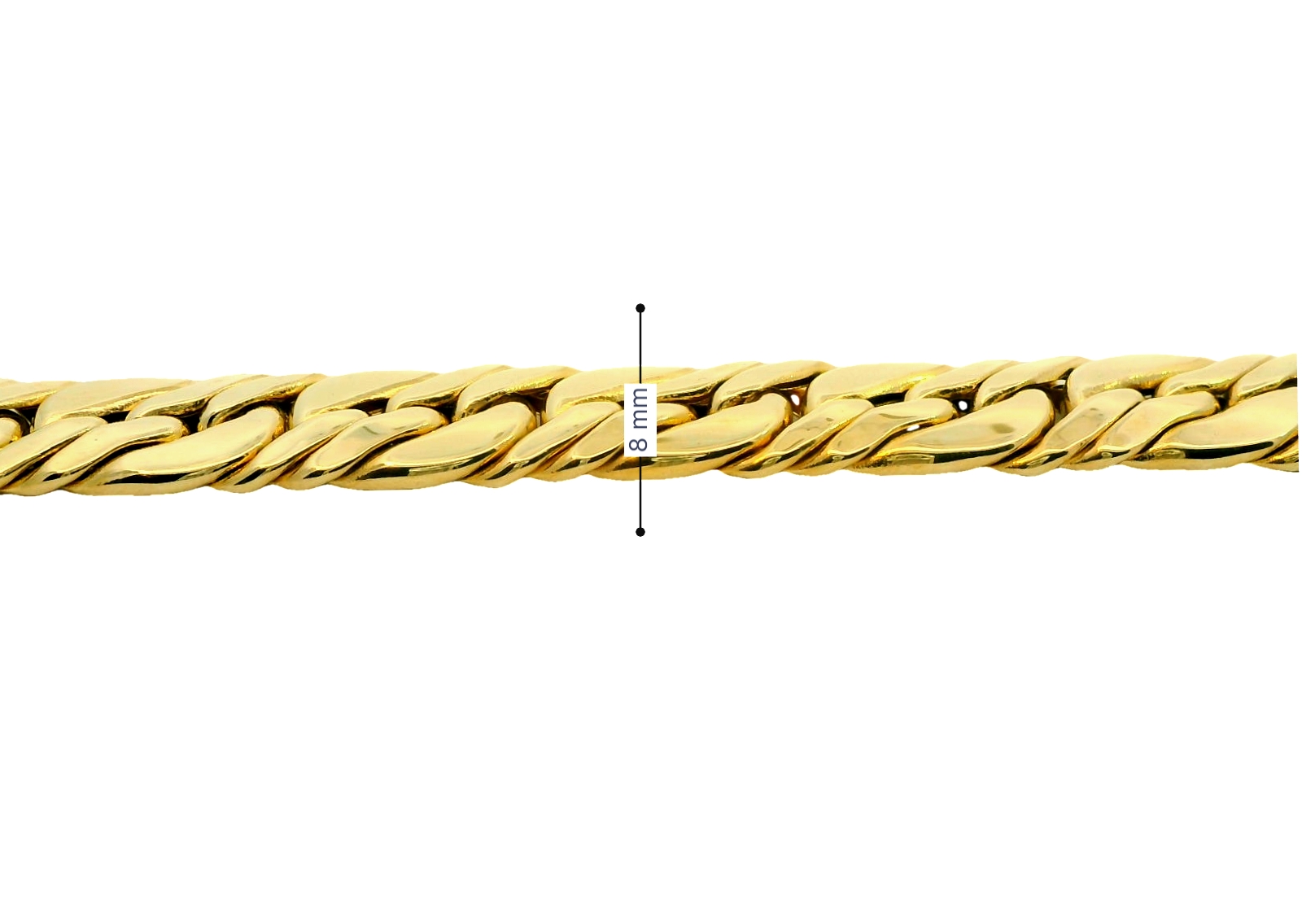Deze uniseks geelgouden armband van 14 karaats (15.19 gr) is een tijdloos sieraad van hoge kwaliteit. De armband is subtiel en stijlvol, perfect voor zowel mannen als vrouwen. Draag hem alleen als statement stuk of combineer hem met andere armbanden voor een trendy look. De armband is verstelbaar, waardoor hij perfect past om elke pols. Een must-have voor elke sieradencollectie.