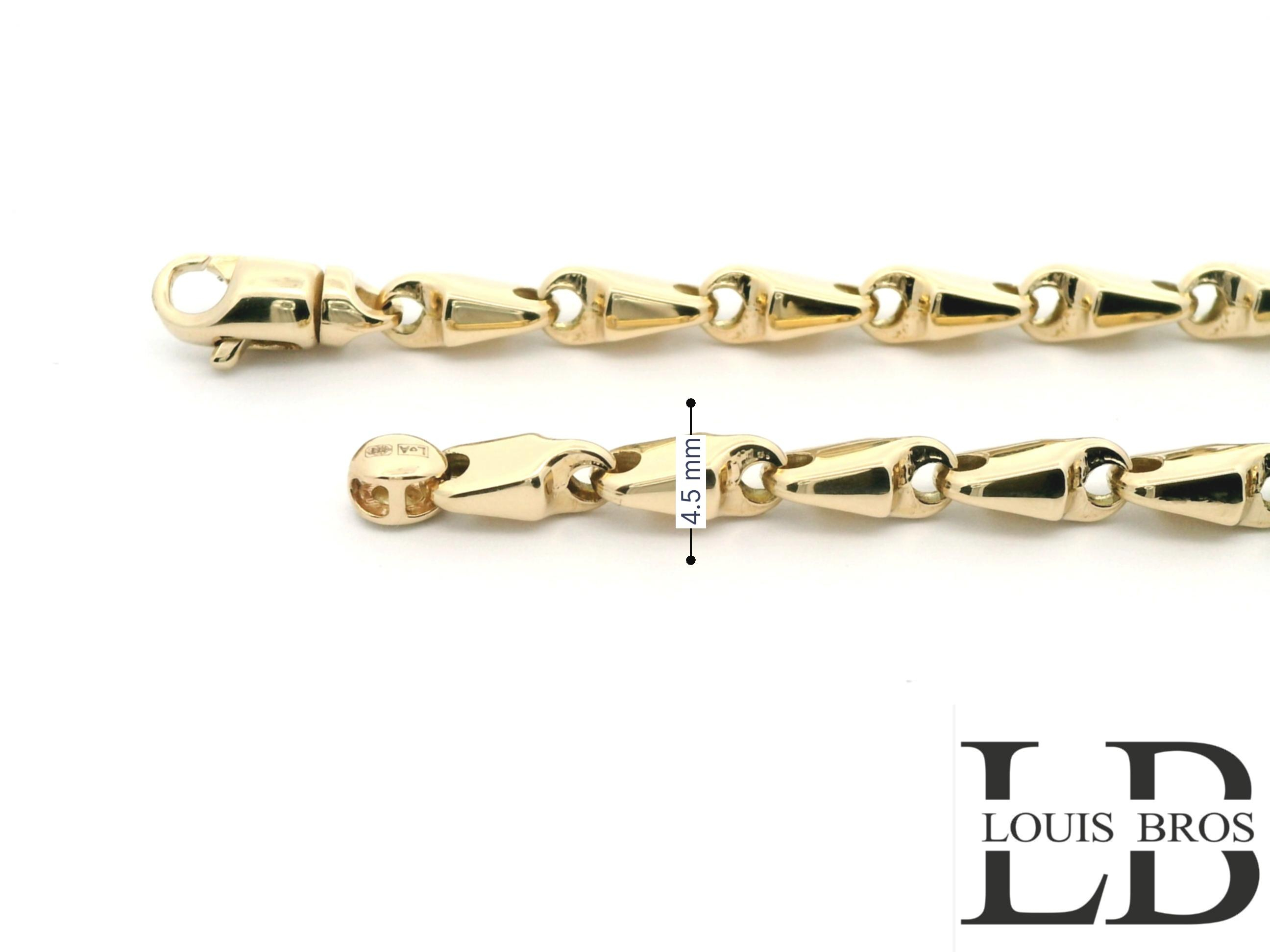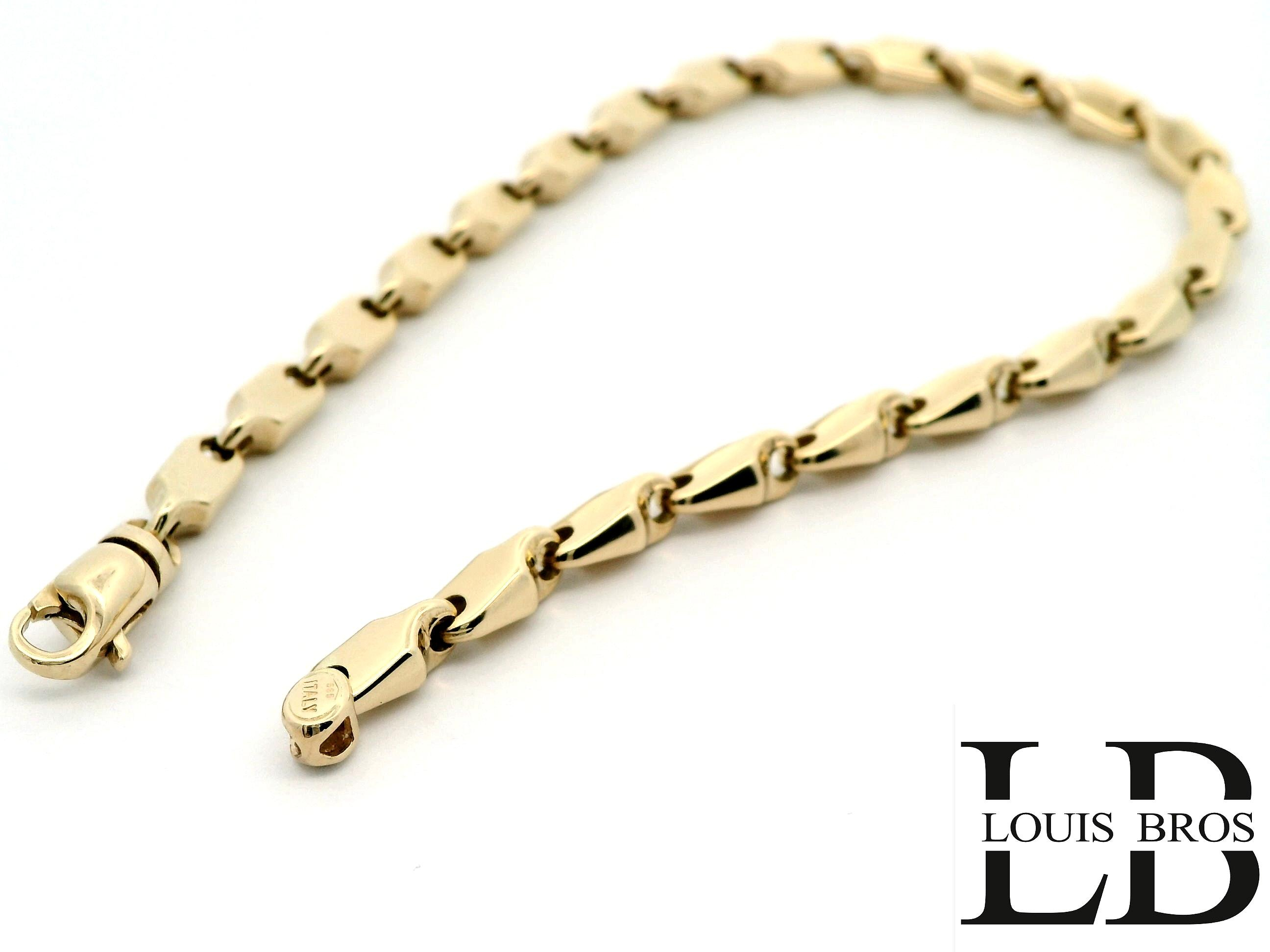 Ontdek de tijdloze schoonheid van deze exclusieve damesarmband, vervaardigd uit 14 karaat goud (6.76 gr) en uitsluitend verkrijgbaar bij Juwelier Louis Bros. Het verfijnde ontwerp combineert klassieke elegantie met een moderne, stijlvolle uitstraling, waardoor dit sieraad een onmisbaar onderdeel wordt van iedere sieradencollectie. De warme glans van het goud weerspiegelt pure klasse en maakt de armband geschikt voor zowel dagelijks gebruik als bijzondere gelegenheden. Als onderdeel van de exclusieve collectie van Juwelier Louis Bros staat dit juweel garant voor vakmanschap, kwaliteit en een vleugje luxe die generaties lang gekoesterd kan worden.