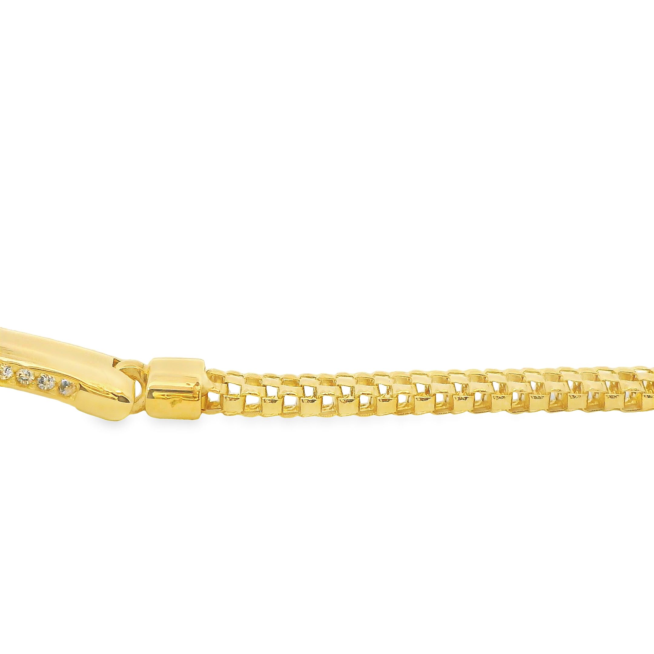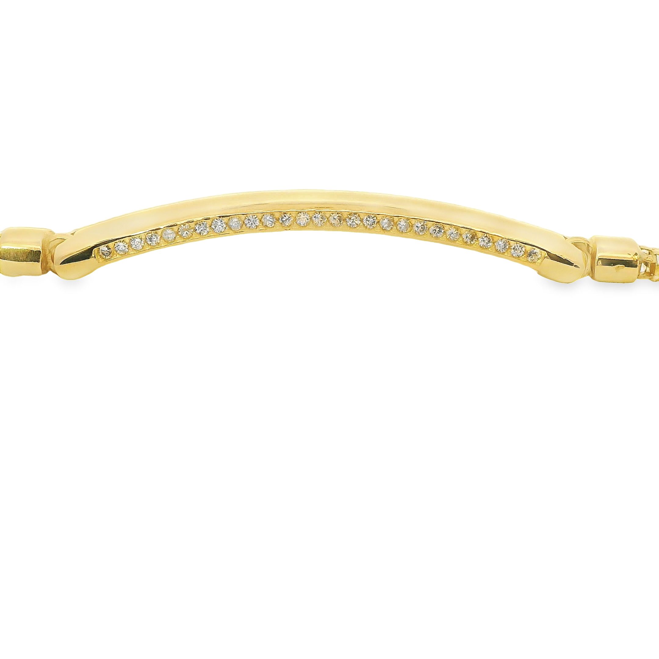 Deze armband van Louis Bros is vervaardigd uit 14 karaat geelgoud met zirkonia (7.70 gr).De armband heeft een lengte van 20 cm en een breedte van 3.5 mm. En een dikte van 2 mm. Deze tijdloze armband is stijlvol , eenvoudig en gemakkelijk te combineren .