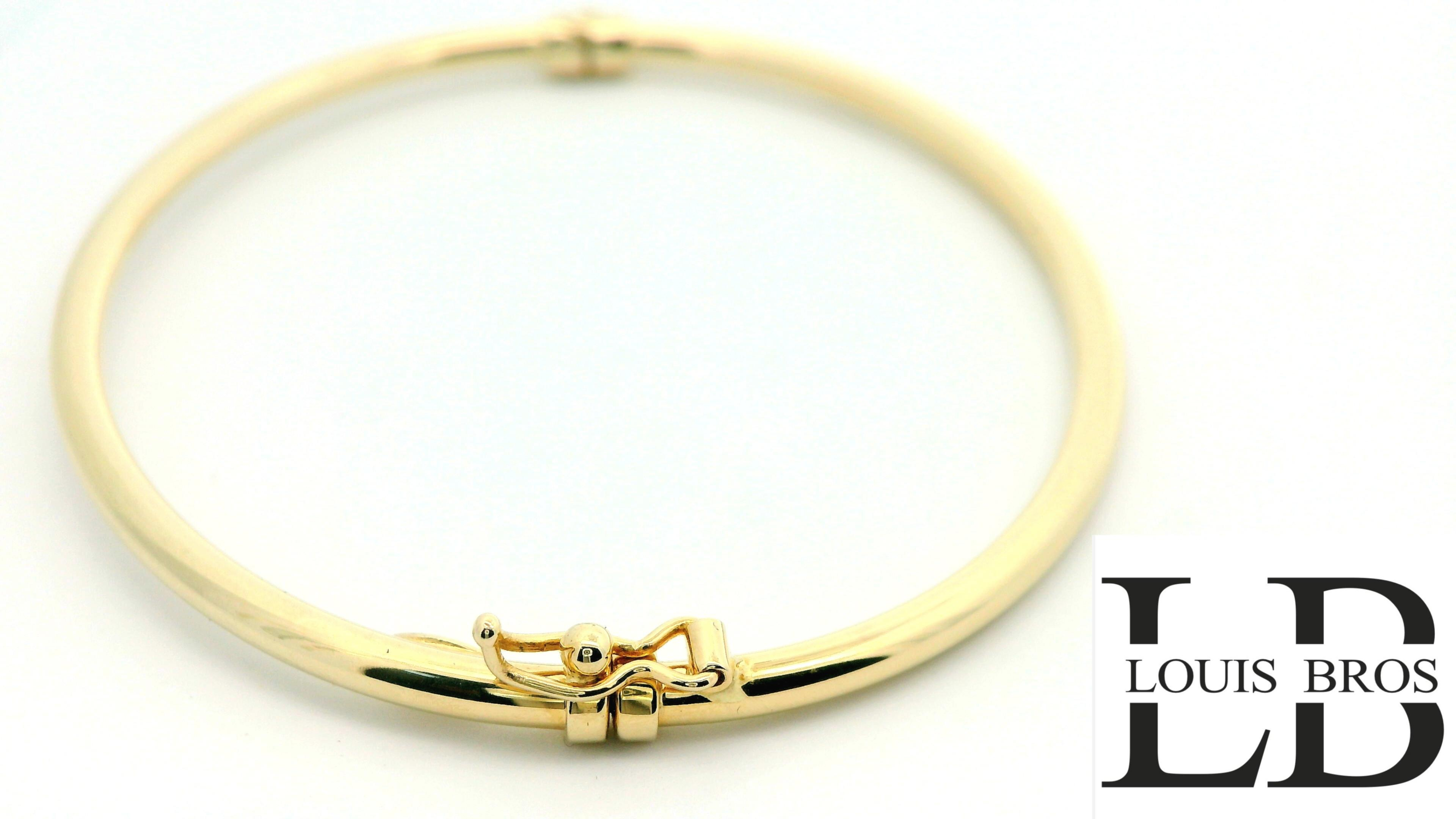 Deze bangle van Louis Bros is vervaardigd uit 14 karaat geelgoud (3.14 gr) . De armband heeft een breedte van 2.5 mm en een dikte van 2.5 mm.