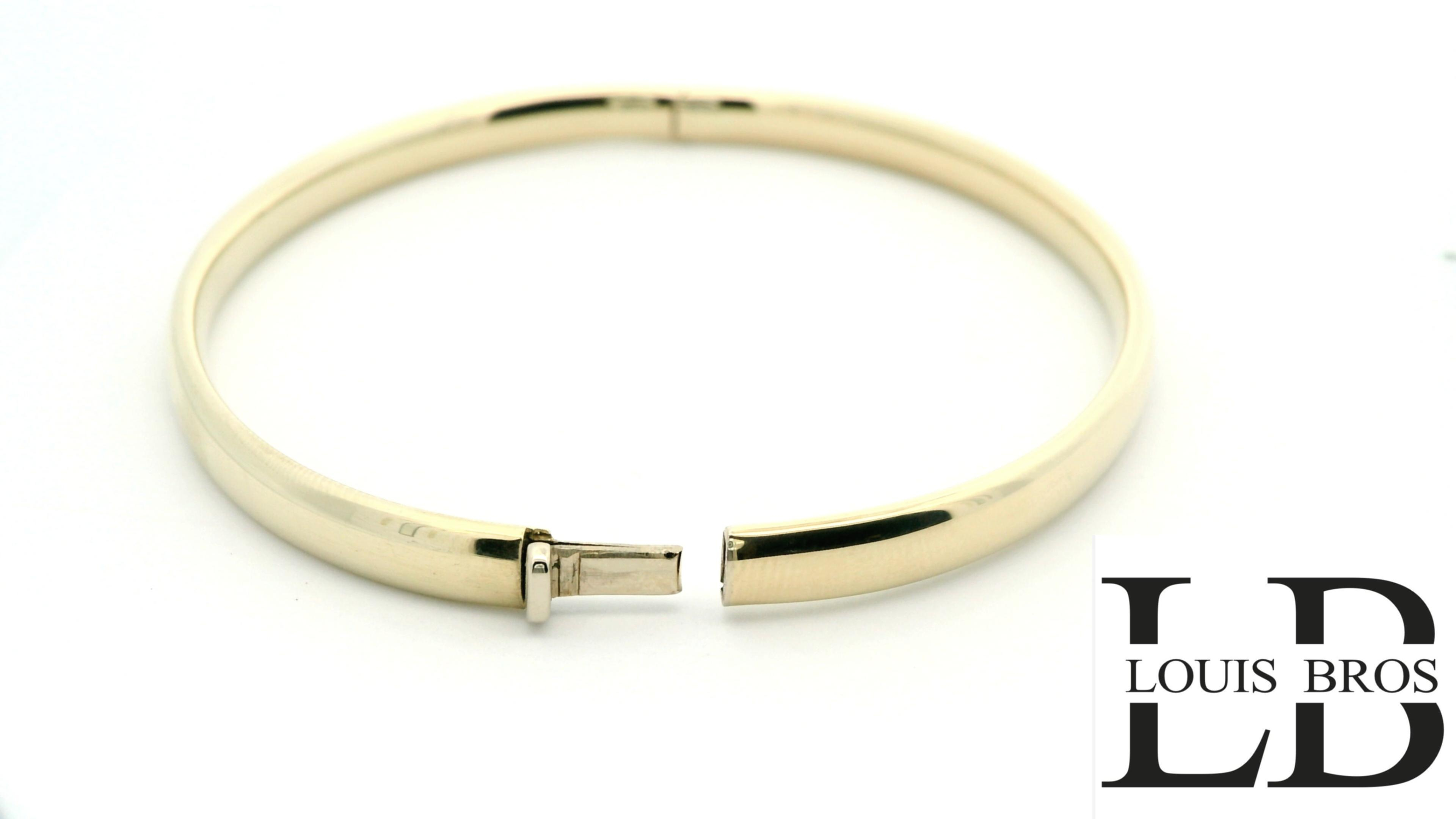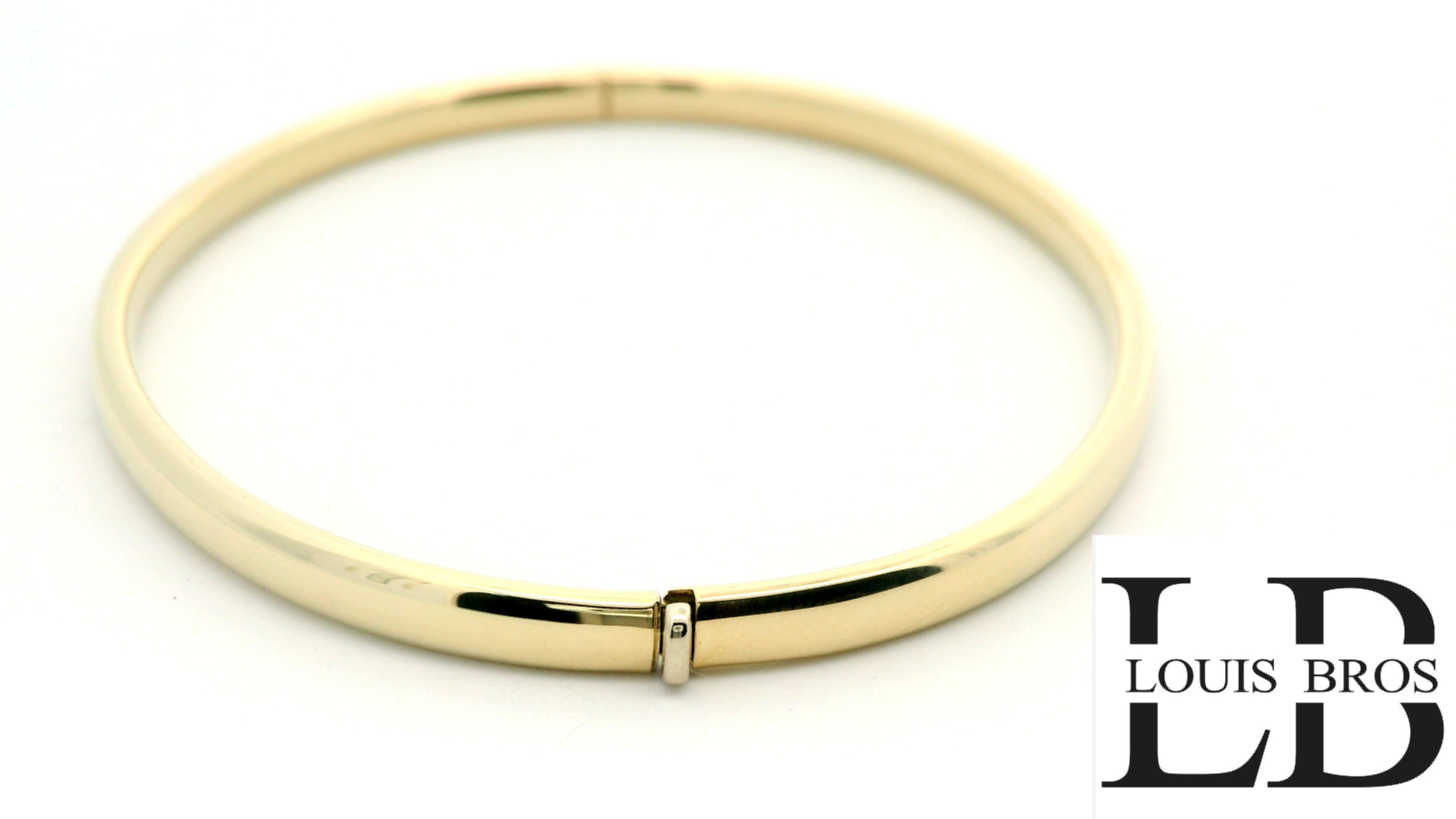 Deze prachtige 14-karaat geelgouden bangle (7.50 gr) straalt pure eenvoud en luxe uit. Met zijn gladde, gepolijste afwerking vangt hij het licht op een betoverende manier, waardoor een stralende glans ontstaat die elke look verrijkt. Het minimalistische en verfijnde design maakt deze armband een tijdloos sieraad dat moeiteloos past bij elke stijl, van klassiek tot modern.