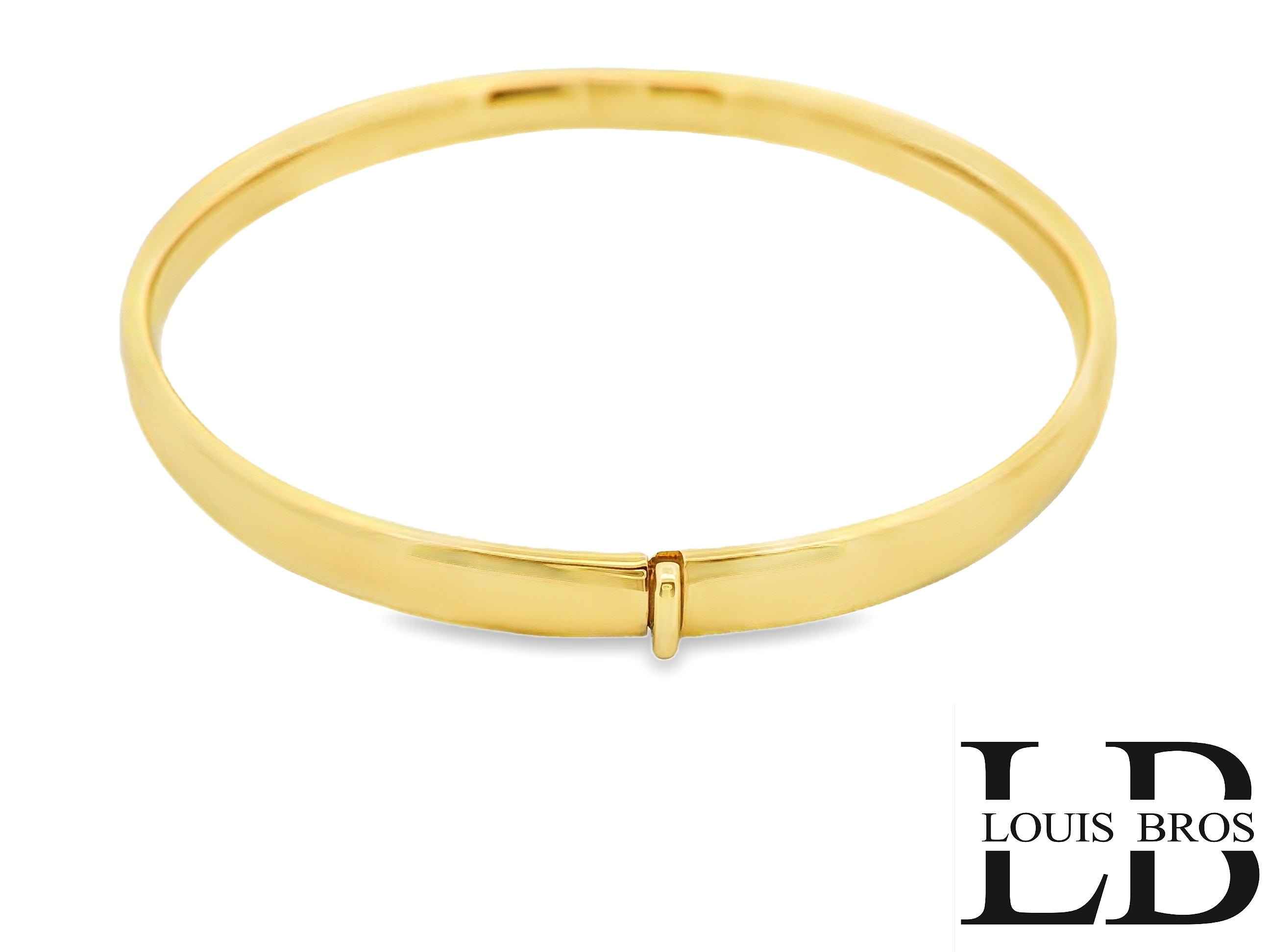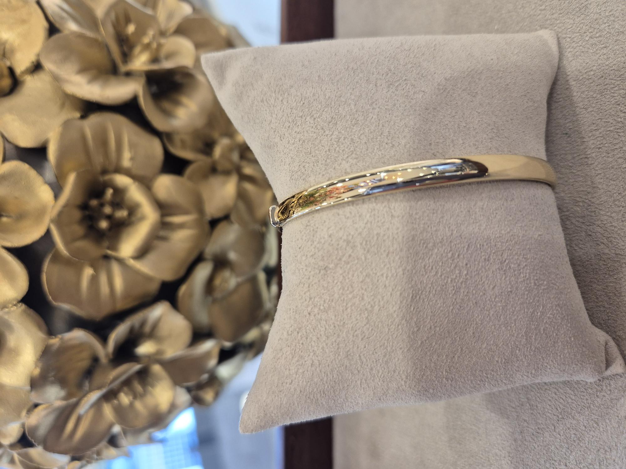 Deze 14 karaat geelgouden bangle belichaamt pure elegantie (7.51 gr). Met haar klassieke vormgeving en warme glans is dit een sieraad dat nooit uit de mode raakt.