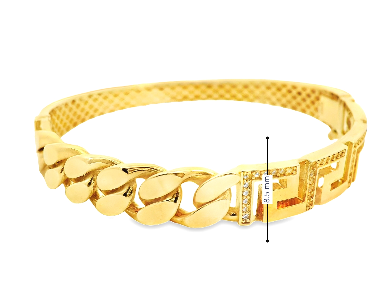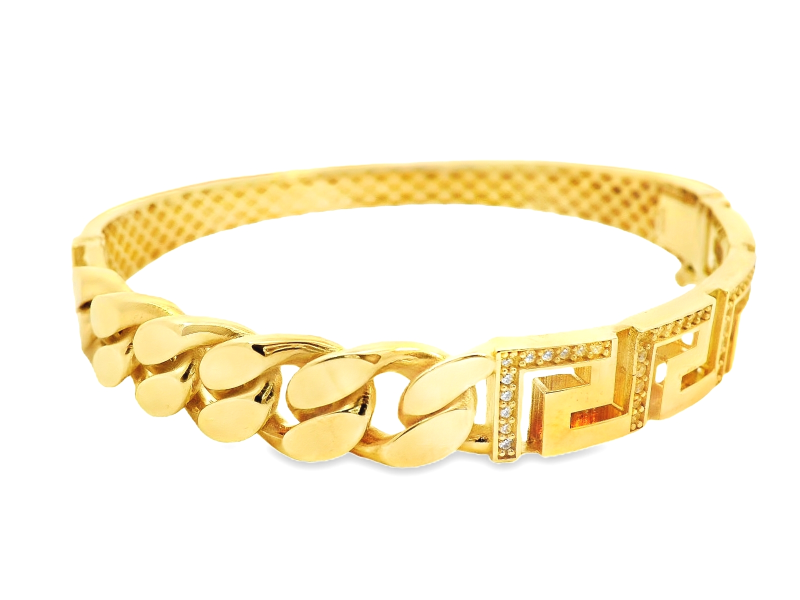 Deze armband met zirkonia's straalt elegantie en verfijning uit. Het prachtige geelgoud accentueert de schittering van de fonkelende zirkonia's, die subtiel in het ontwerp zijn verwerkt. De armband heeft een speels en uniek design, waardoor het een blikvanger is bij elke outfit. Het tijdloze karakter van het geelgoud gecombineerd met de sprankelende zirkonia's maakt deze armband perfect voor elke gelegenheid, of het nu een dagelijks accessoire is of een sieraad voor speciale momenten.