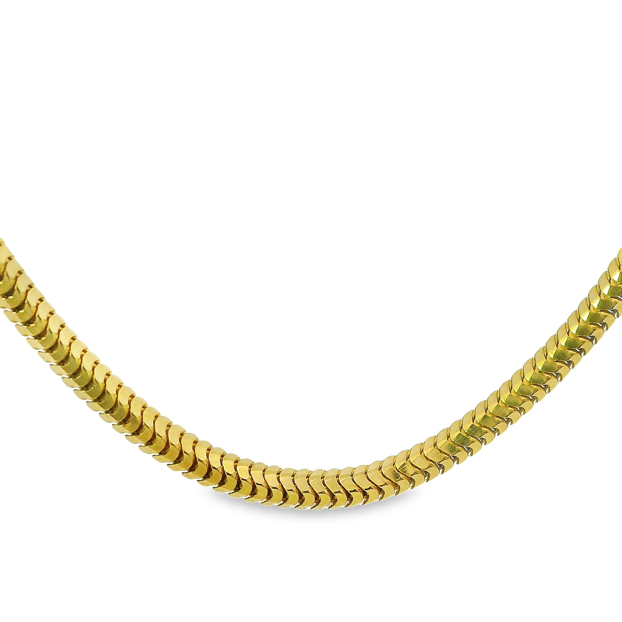 Dit collier van Louis Bros is vervaardigd uit 14 karaat geelgoud (11 gr). Het collier heeft een lengte van 42 cm en een dikte van 2 mm. Dit collier is stijlvol, eenvoudig en gemakkelijk te combineren.