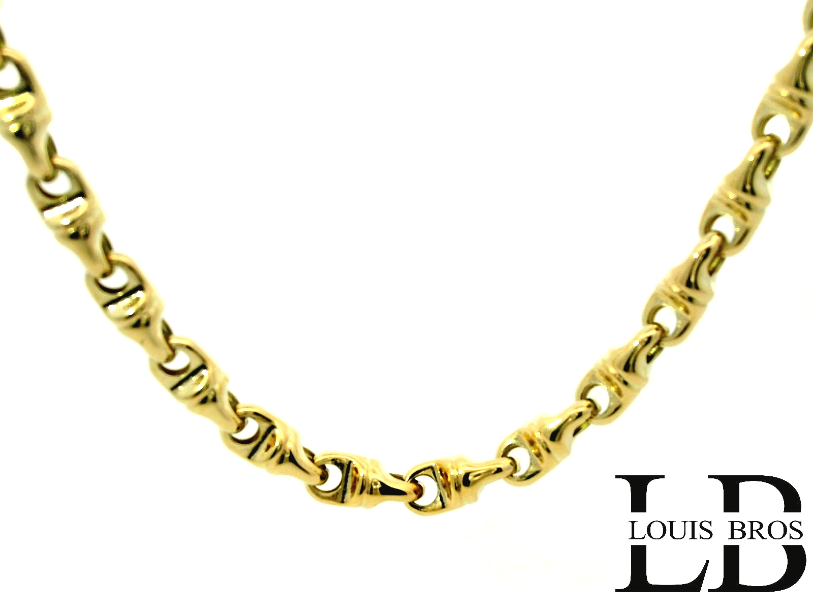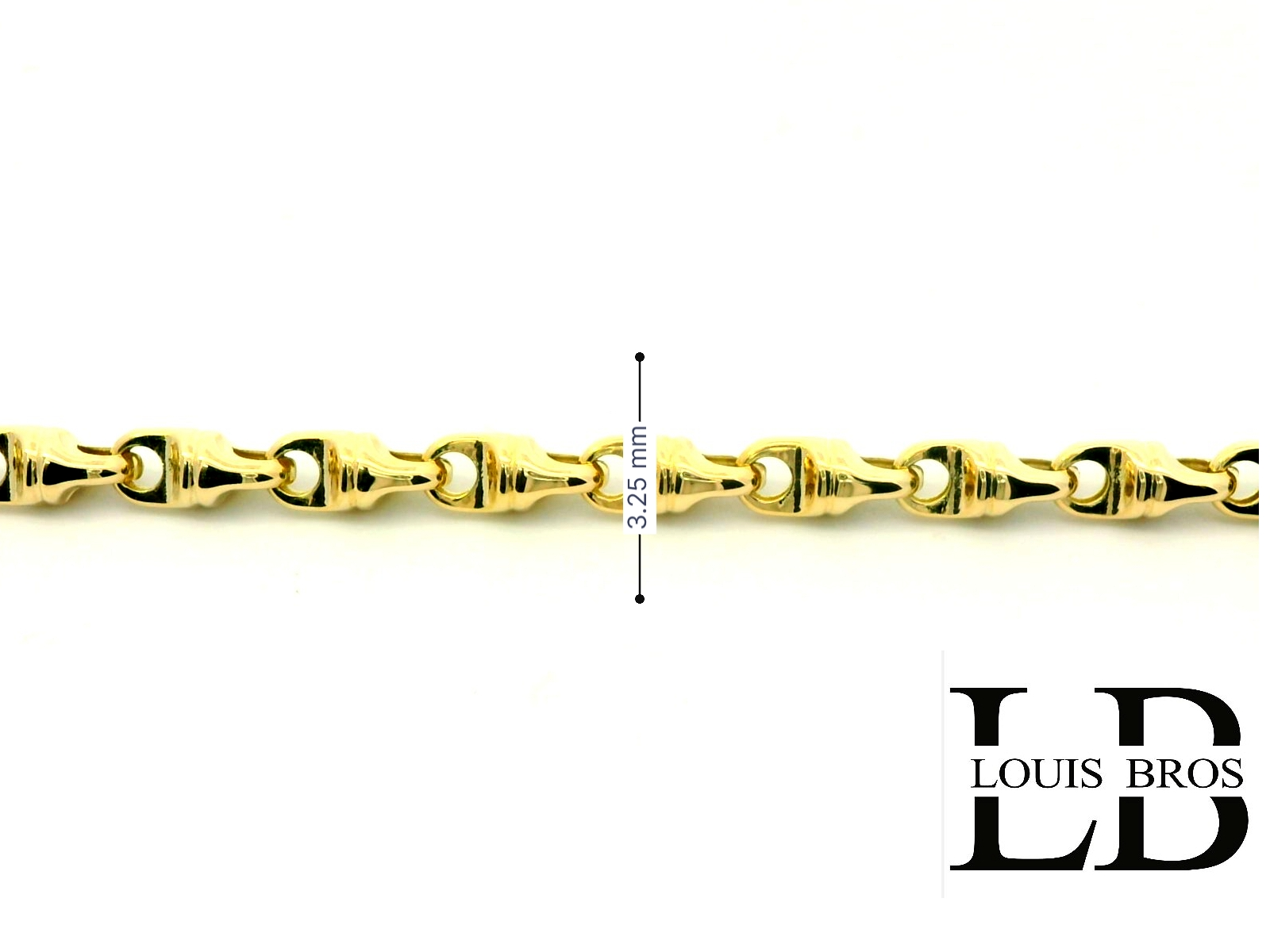Dit schitterende damescollier is vervaardigd uit 14 karaat geelgoud (8.59 gr) en uitgevoerd met verfijnde schakels die het sieraad een luxe en stijlvolle uitstraling geven. Het chique en elegante design maakt dit collier tot een tijdloze klassieker die nooit uit de mode raakt.