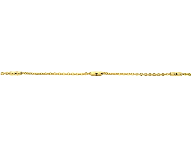 Dit prachtige geelgouden collier van 14 karaat (3.04 gr) is een fantasierijke toevoeging aan elke outfit. De unieke vormen en details maken het een echte eyecatcher. Draag het collier op zichzelf voor een elegante look, of combineer het met andere sieraden voor een meer gedurfde uitstraling. Hoe dan ook, dit collier zal zeker de aandacht trekken. Bestel vandaag nog en voeg wat extra glans toe aan je collectie!