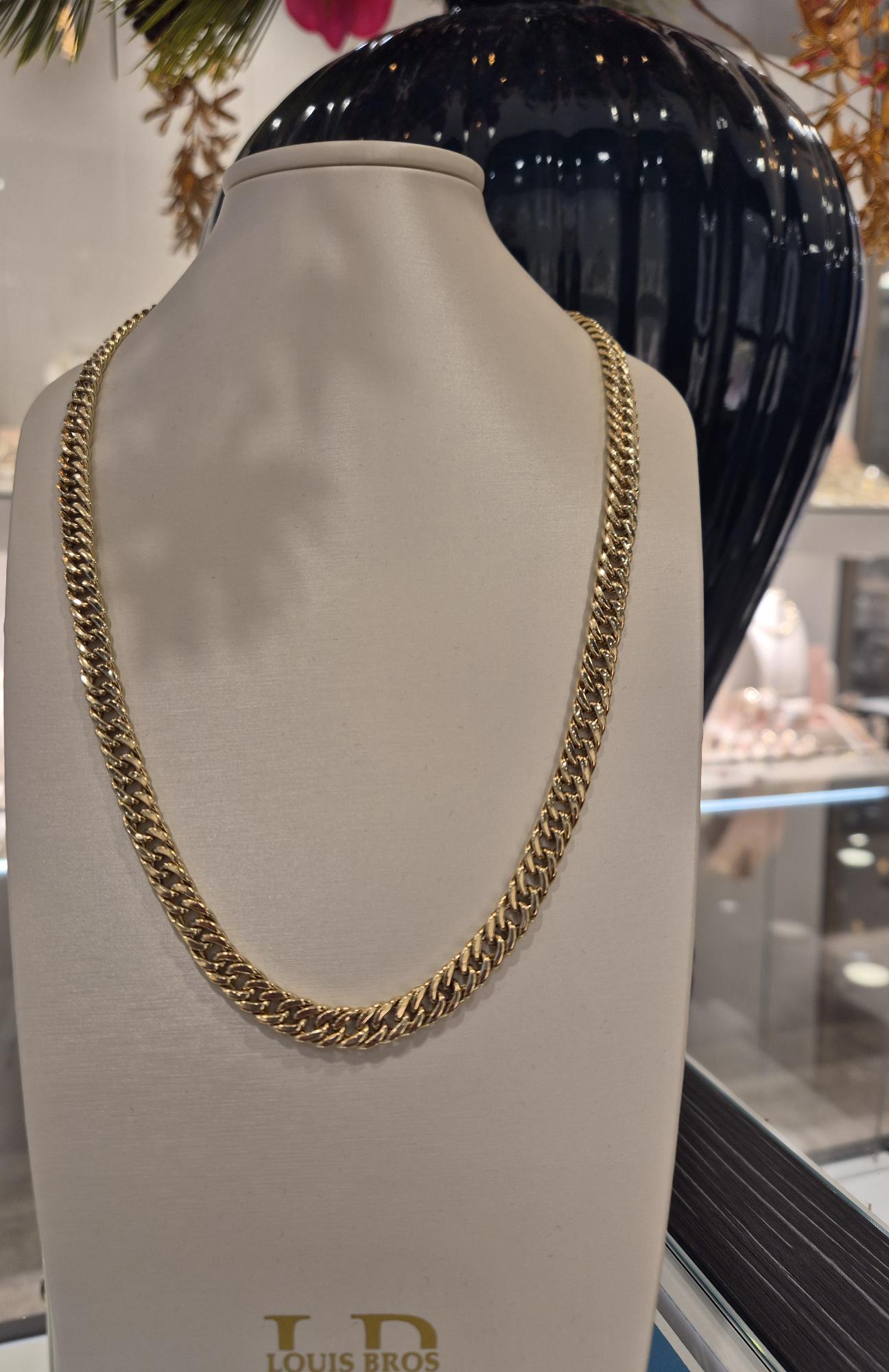 Dit geelgouden collier is gemaakt van 14 karaat ( 17.33 gr) goud en heeft een trendy gourmet schakel. Het is speciaal ontworpen voor heren en geeft een stijlvolle touch aan elke outfit. Dit collier kan zowel casual als formeel gedragen worden en is perfect voor elke gelegenheid. Maak je look compleet met dit prachtige sieraad!