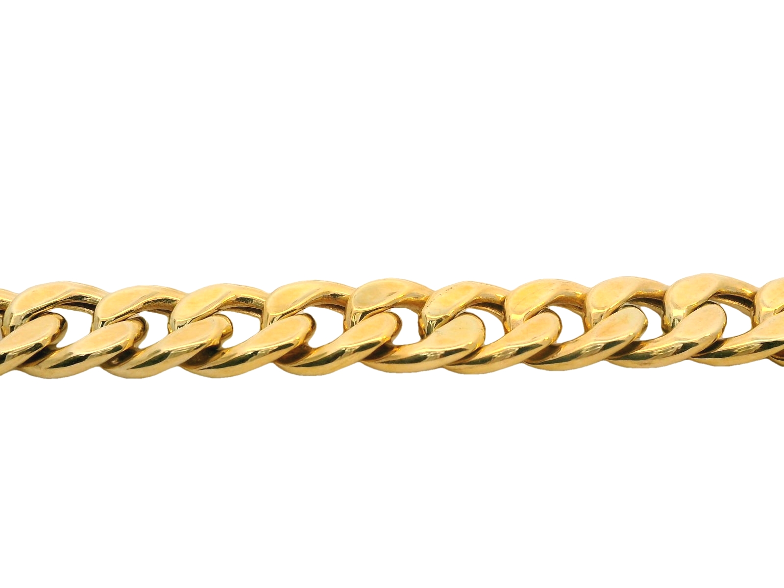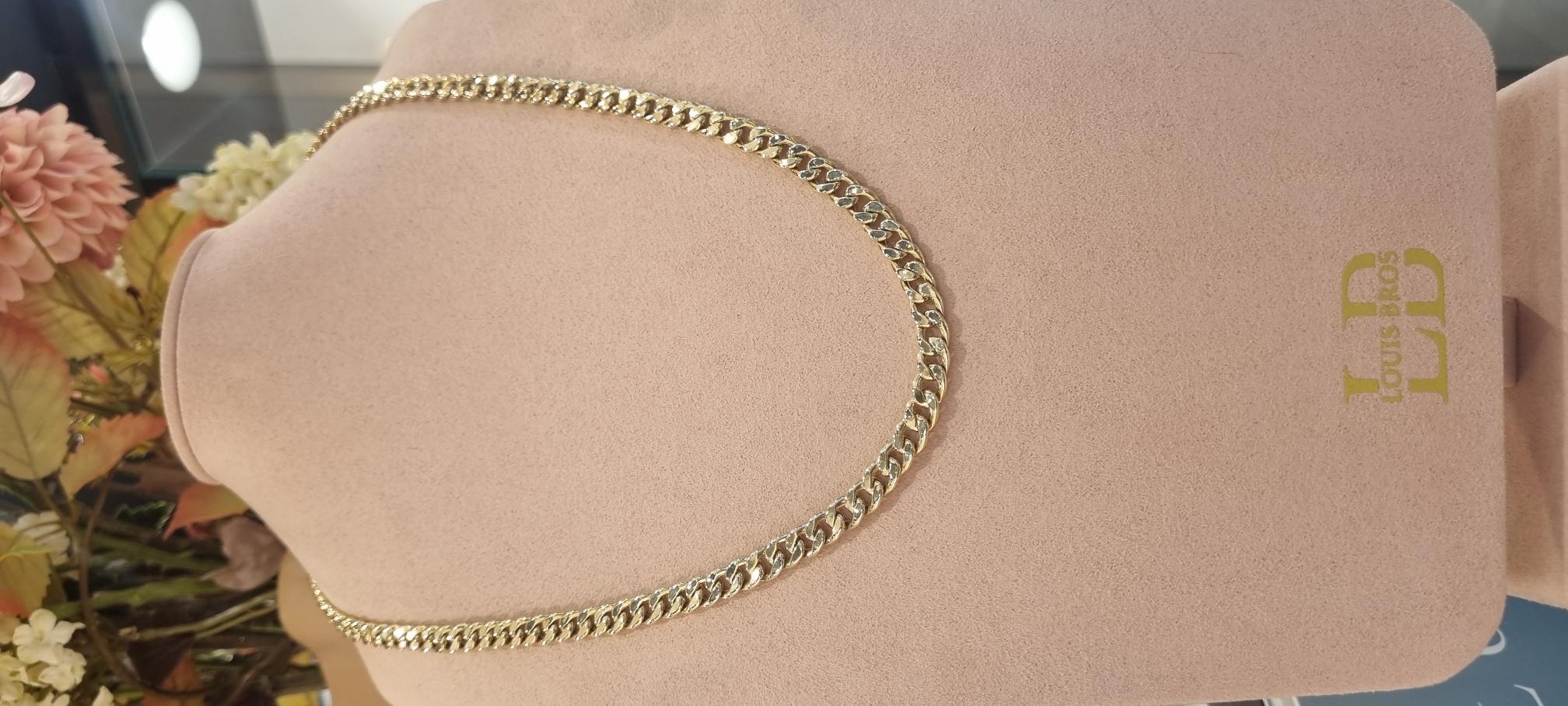 Dit gourmet collier voor heren is een statement van luxe en kracht. Gemaakt van 14-karaats goud, heeft het collier een robuuste uitstraling dankzij de iconische platte gourmet schakels. Het opvallende ontwerp straalt stijl en zelfvertrouwen uit, perfect voor de man die een opvallend accessoire wil dragen. Dit tijdloze en stevige collier voegt een vleugje elegantie toe aan elke outfit en is ideaal voor mannen die houden van een gedurfde, maar klassieke look.