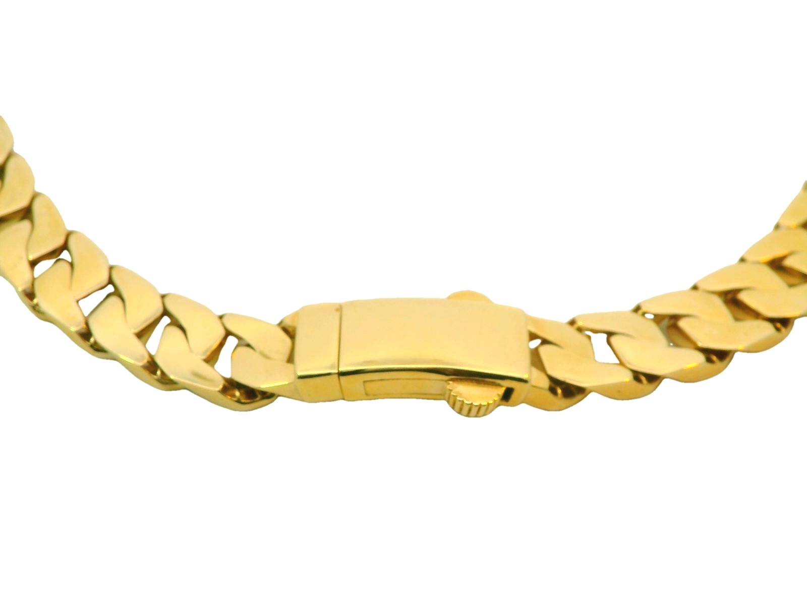 Dit collier voor heren is een statement van luxe en kracht. Gemaakt van 14-karaats goud, heeft het collier een robuuste uitstraling dankzij de iconische platte gourmet schakels. Het opvallende ontwerp straalt stijl en zelfvertrouwen uit, perfect voor de man die een opvallend accessoire wil dragen. Dit tijdloze en stevige collier voegt een vleugje elegantie toe aan elke outfit en is ideaal voor mannen die houden van een gedurfde, maar klassieke look.