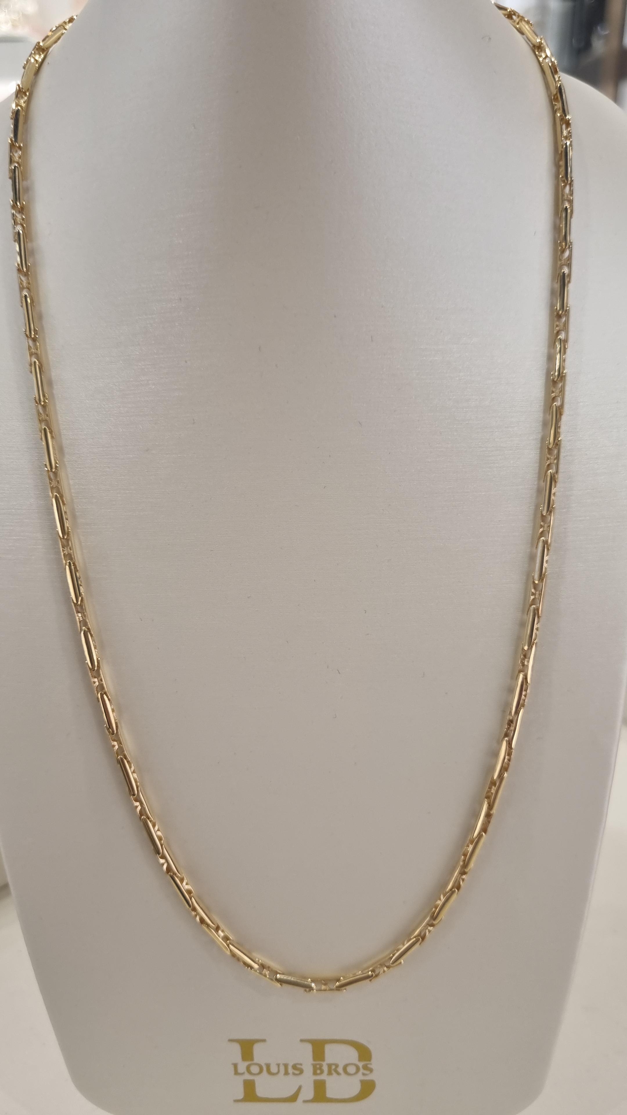 Dit unisex collier van Louis Bros is vervaardigd uit 14 karaat geelgoud (11.70 gr.). Het collier heeft een breedte van 2.75 mm. En een lengte van 60 cm. Dit collier is stijlvol, eenvoudig en gemakkelijk te combineren.