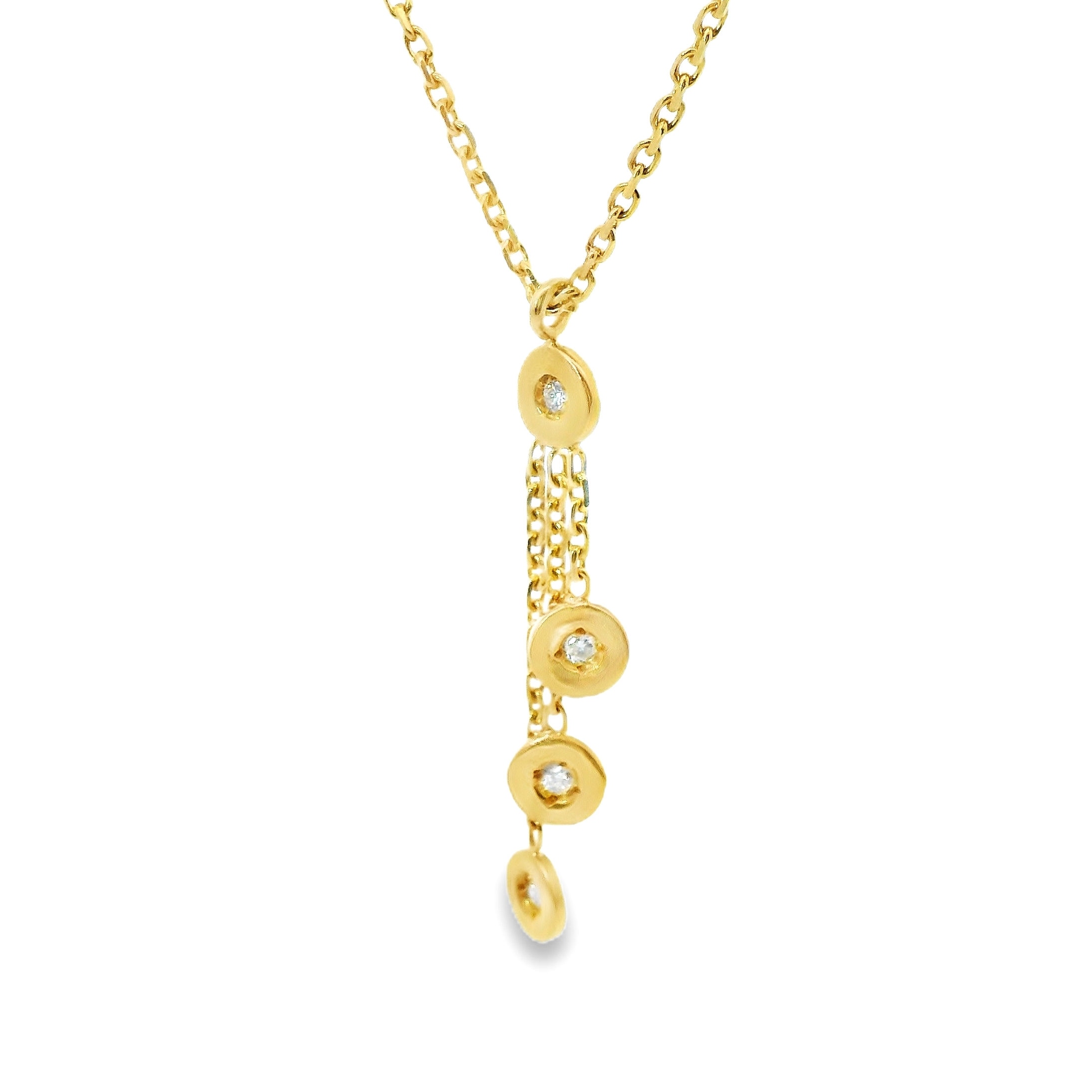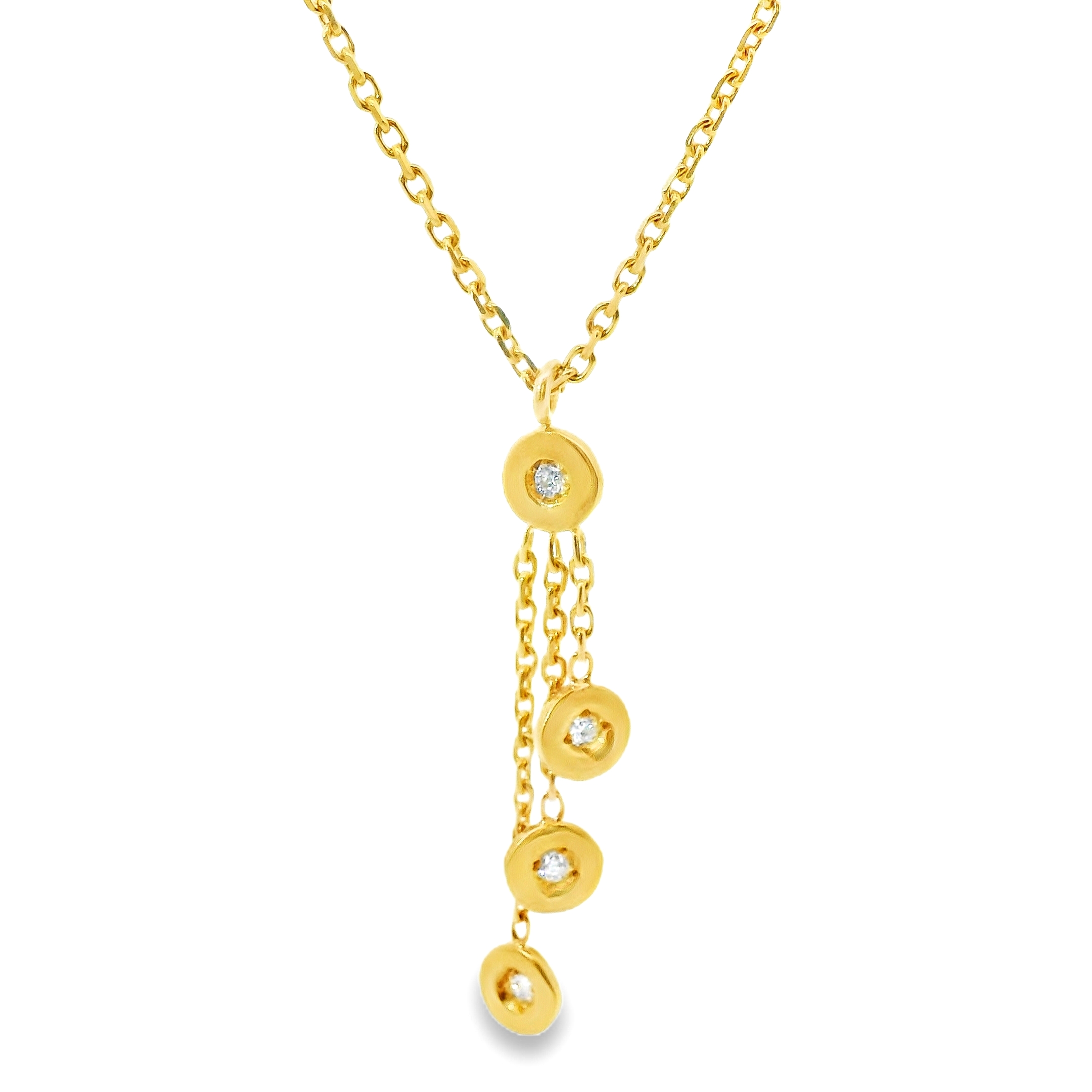 Dit collier van Louis Bros is vervaardigd uit 18 karaat geelgoud (4.31.gr.) en is gezet met 4 briljant geslepen diamanten met een totaalgewicht van 0.04 ct.