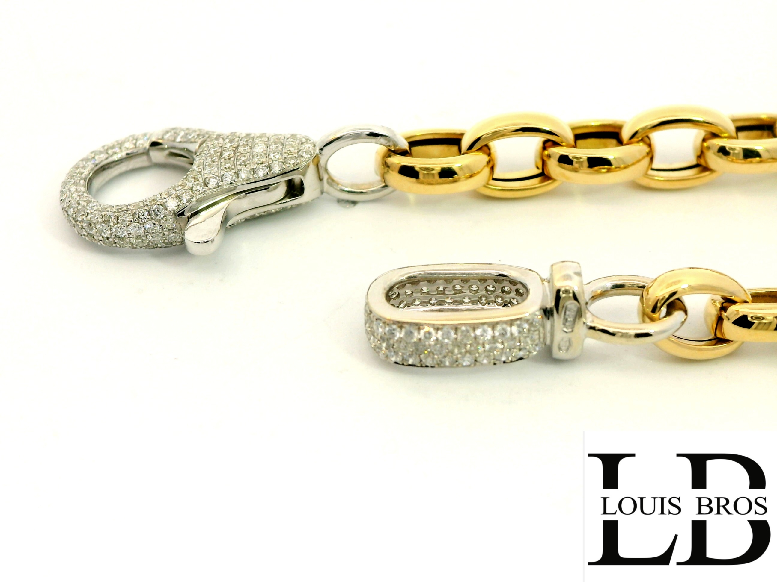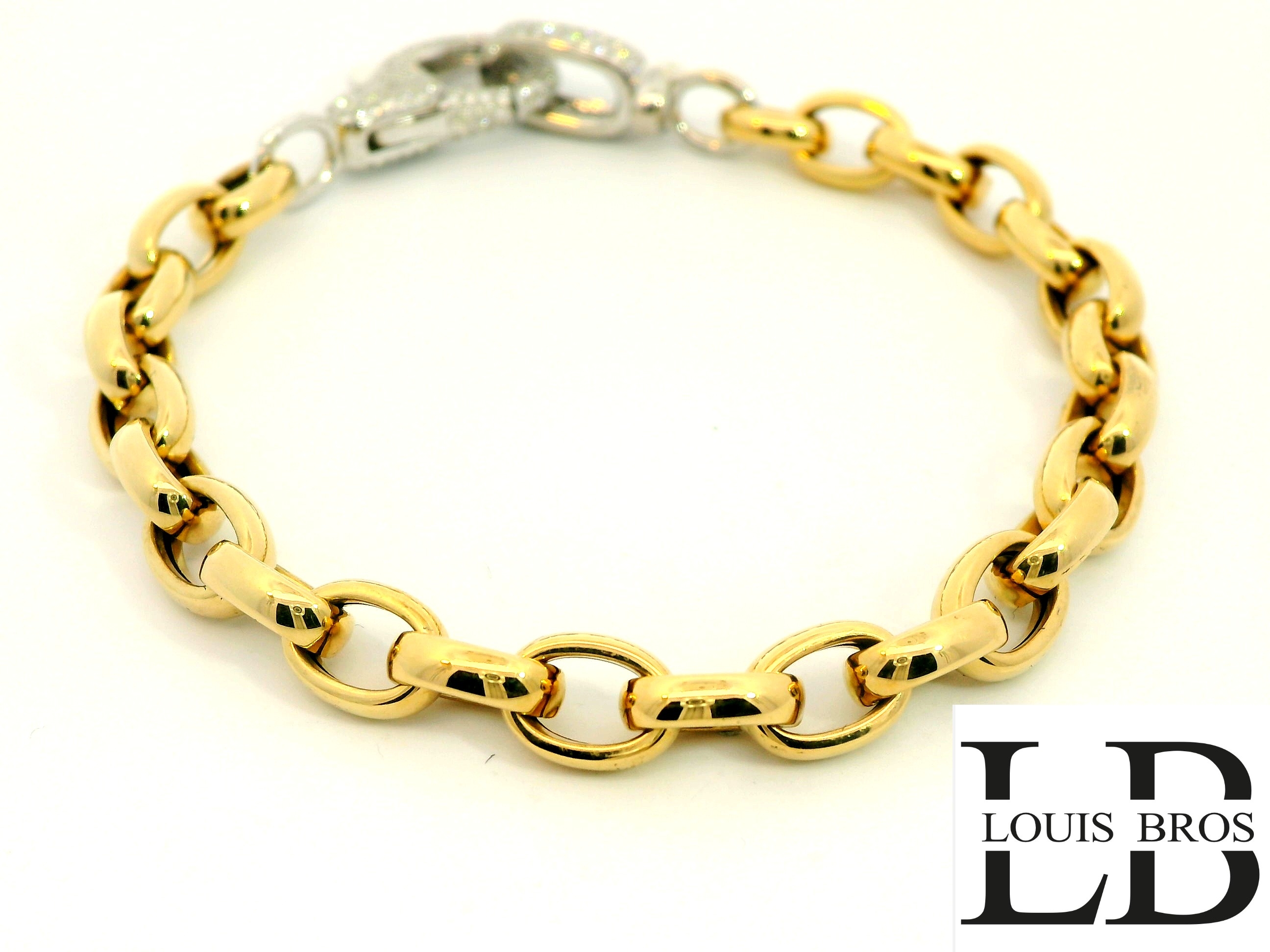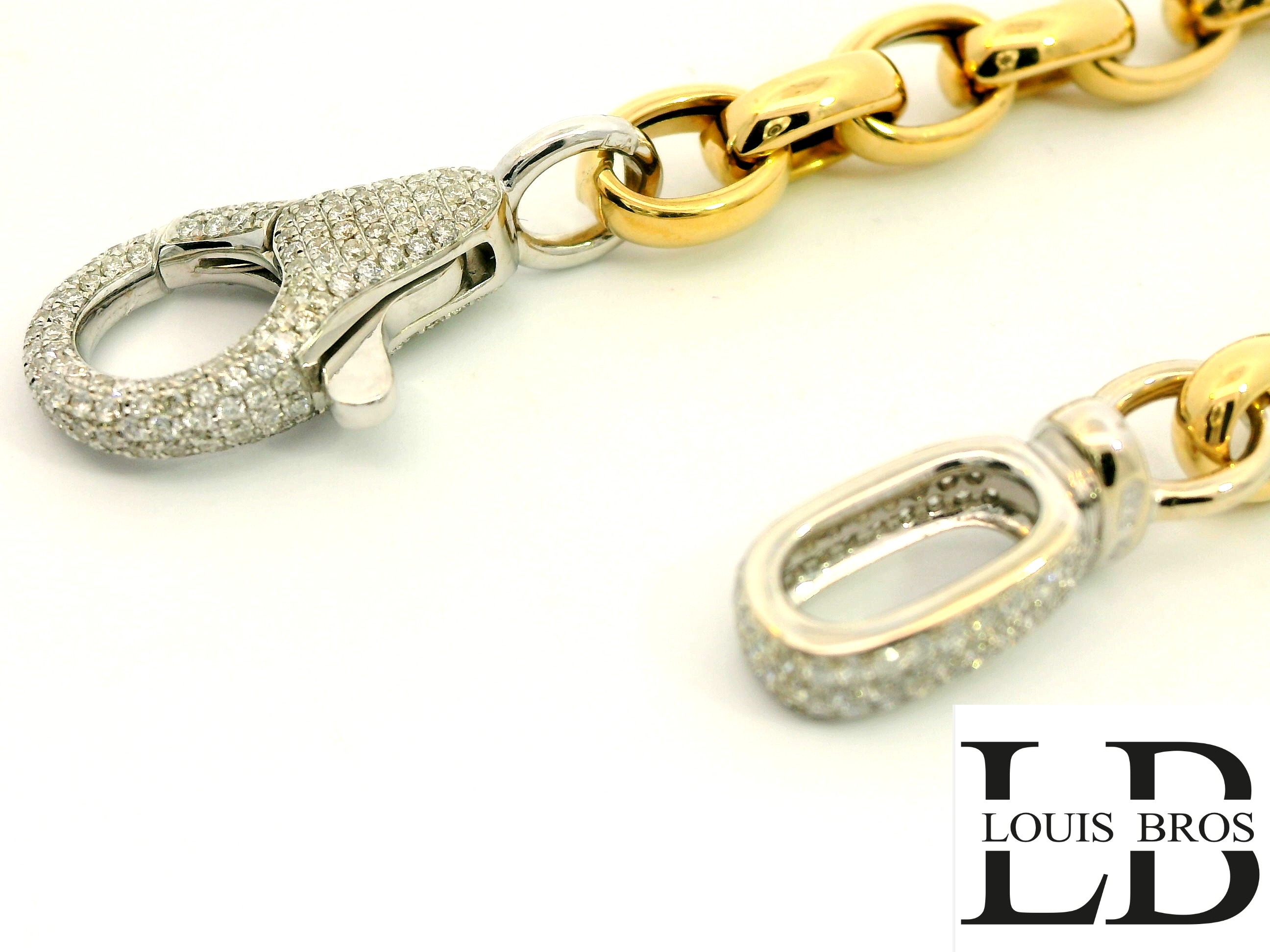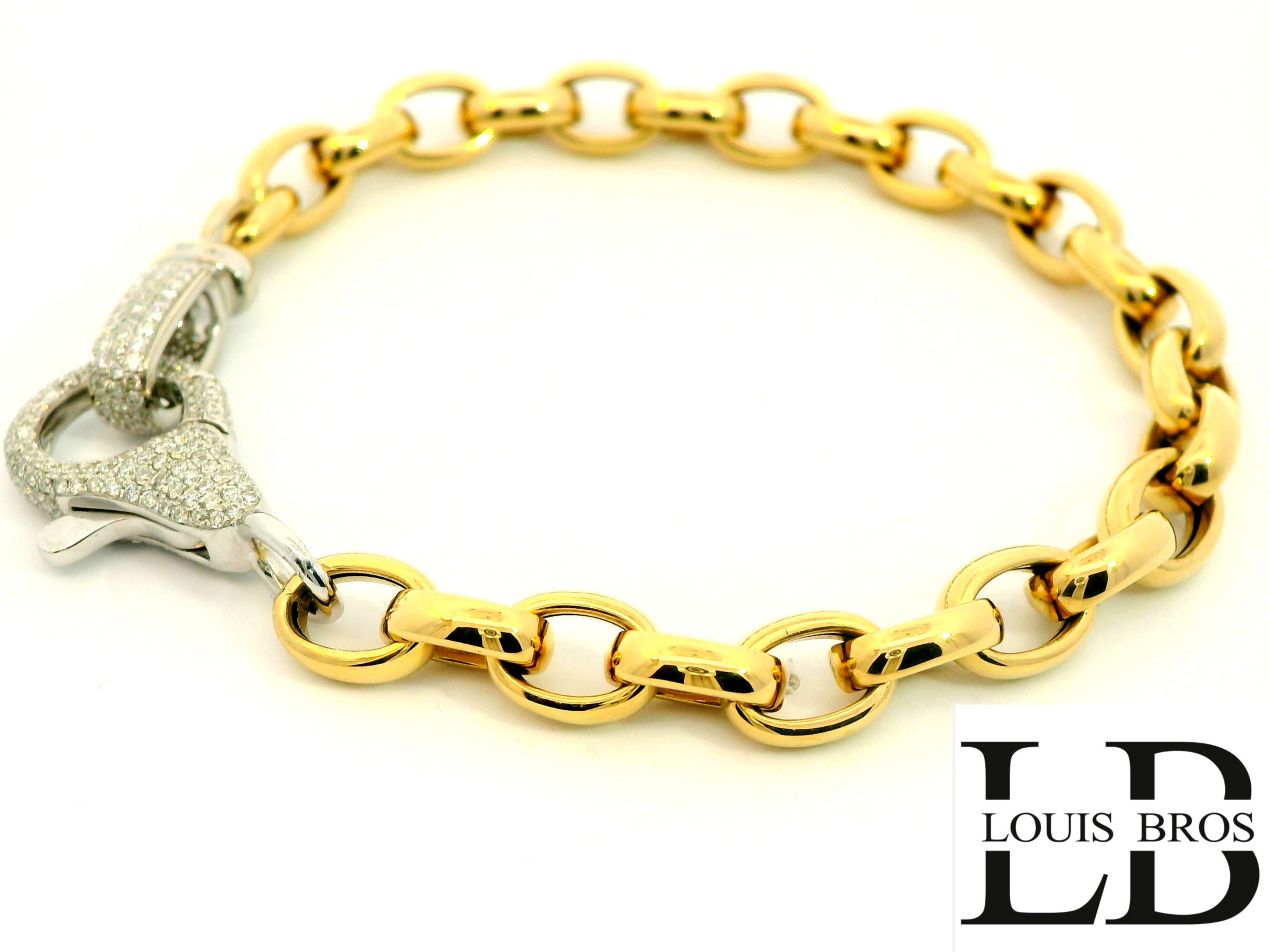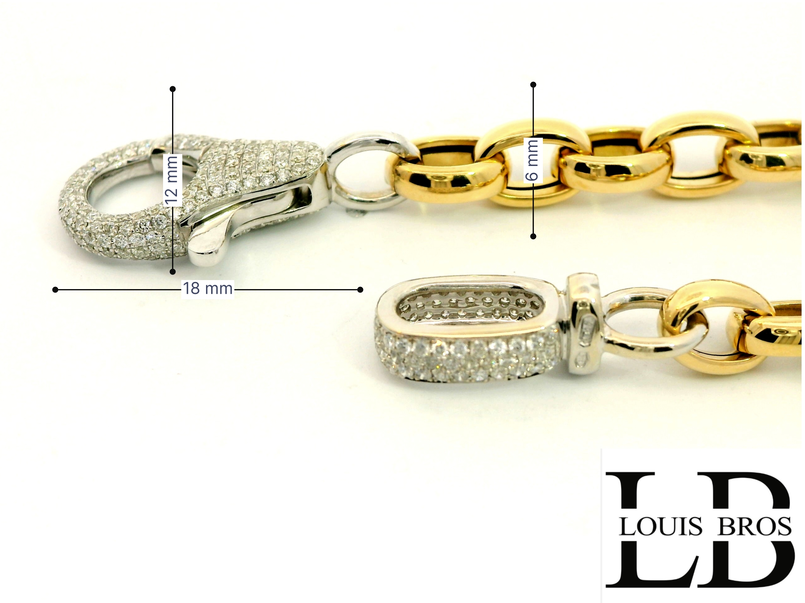Deze exclusieve geelgouden armband van 18 karaat (10.30 gr) is een toonbeeld van verfijnde luxe en vrouwelijkheid. Het unieke ontwerp met elegante ovale schakels geeft de armband een tijdloze en stijlvolle uitstraling. Wat deze armband echt bijzonder maakt, is het schitterende slot dat volledig is bezet met fonkelende diamanten – een subtiel detail dat direct de aandacht trekt en de armband een luxueuze finishing touch geeft.