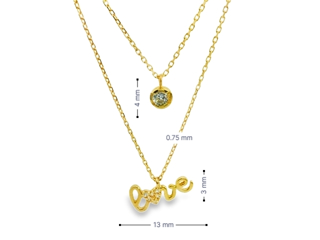 Dit prachtige geelgouden dubbele collier van 14 karaat (2.63 gr) is versierd met schitterende zirkonia steentjes. Het collier kan op verschillende manieren gedragen worden, zoals in laagjes of juist als statement piece. De combinatie van goud en zirkonia geeft een luxe uitstraling aan elke outfit. Een echte eyecatcher voor elke gelegenheid!
