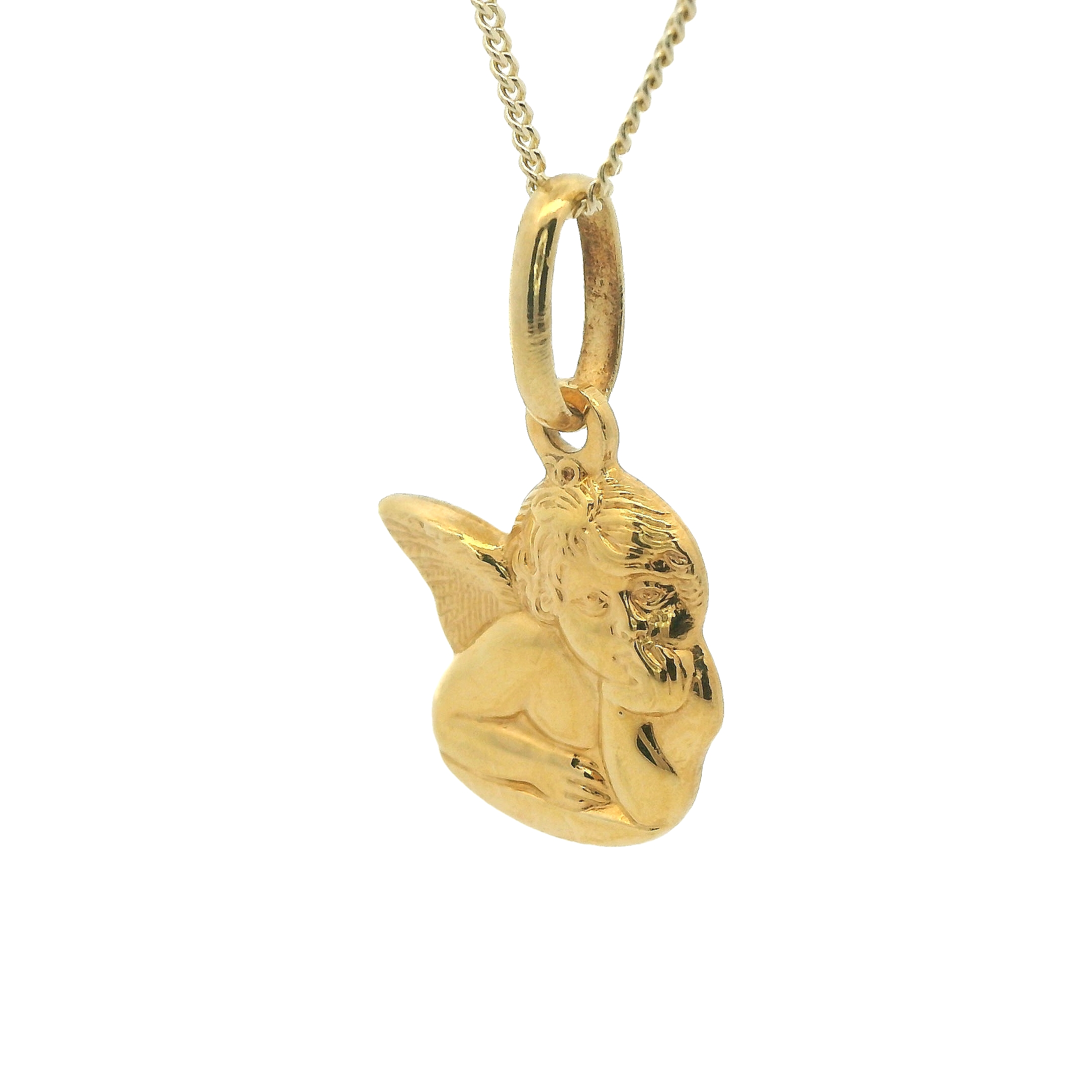 Deze hanger in de vorm van een engel straalt elegantie en symboliek uit. De warme glans van het goud benadrukt de gedetailleerde vormen van de engel, die vaak wordt gezien als een beschermend en spiritueel symbool. Deze hanger is niet alleen een prachtig sieraad, maar ook een betekenisvolle talisman die rust en bescherming kan bieden. Perfect om dicht bij het hart te dragen, is deze geelgouden engel een subtiele en stijlvolle toevoeging aan elke sieradencollectie.