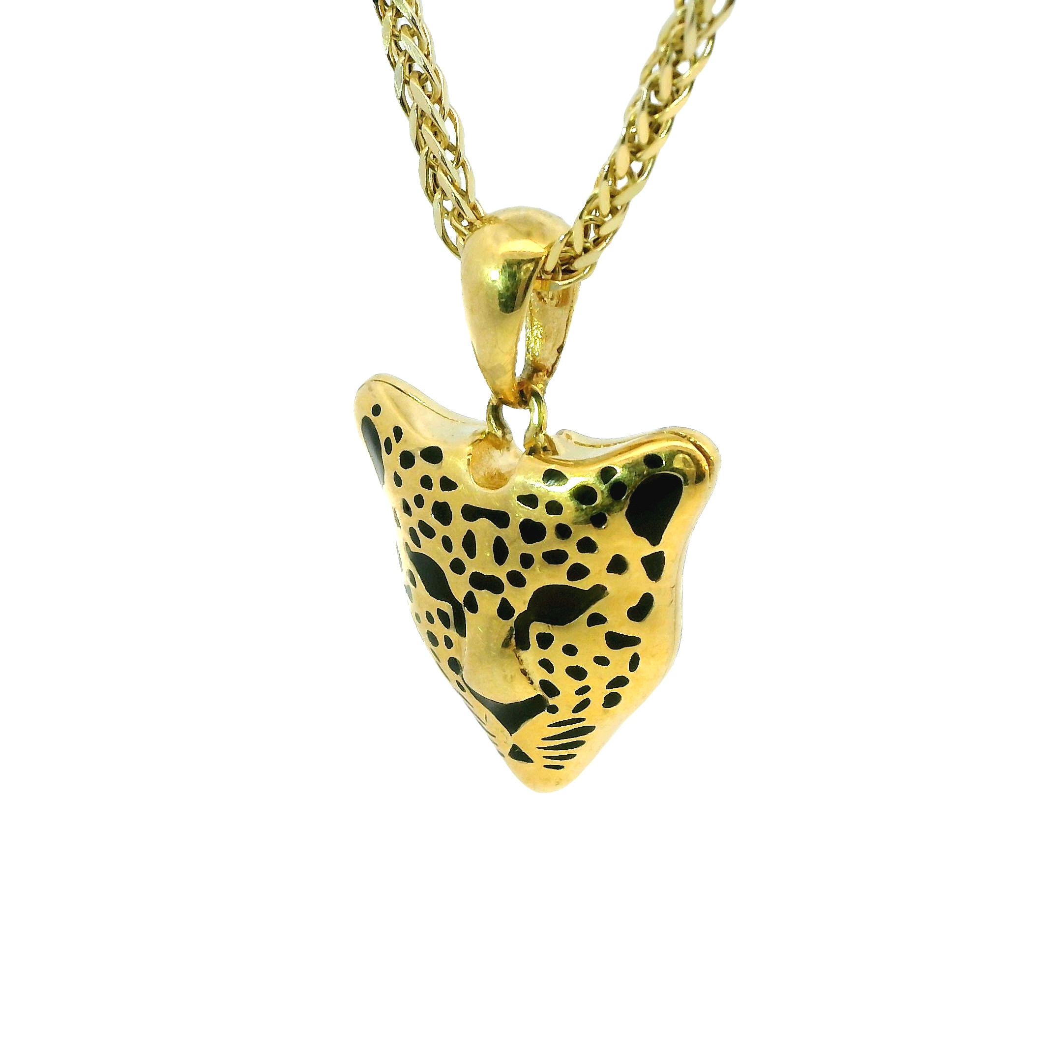 Deze verfijnde hanger in de vorm van een luipaard straalt kracht en elegantie uit. Het gedetailleerde ontwerp benadrukt de sierlijke en krachtige eigenschappen van het majestueuze dier, waardoor het sieraad een opvallend en luxueus karakter krijgt. De warme glans van het geelgoud geeft de hanger een tijdloze schoonheid, terwijl de luipaard symbool staat voor onafhankelijkheid, moed en bescherming. Dit unieke sieraad is perfect voor wie houdt van een statement met stijl en betekenis.