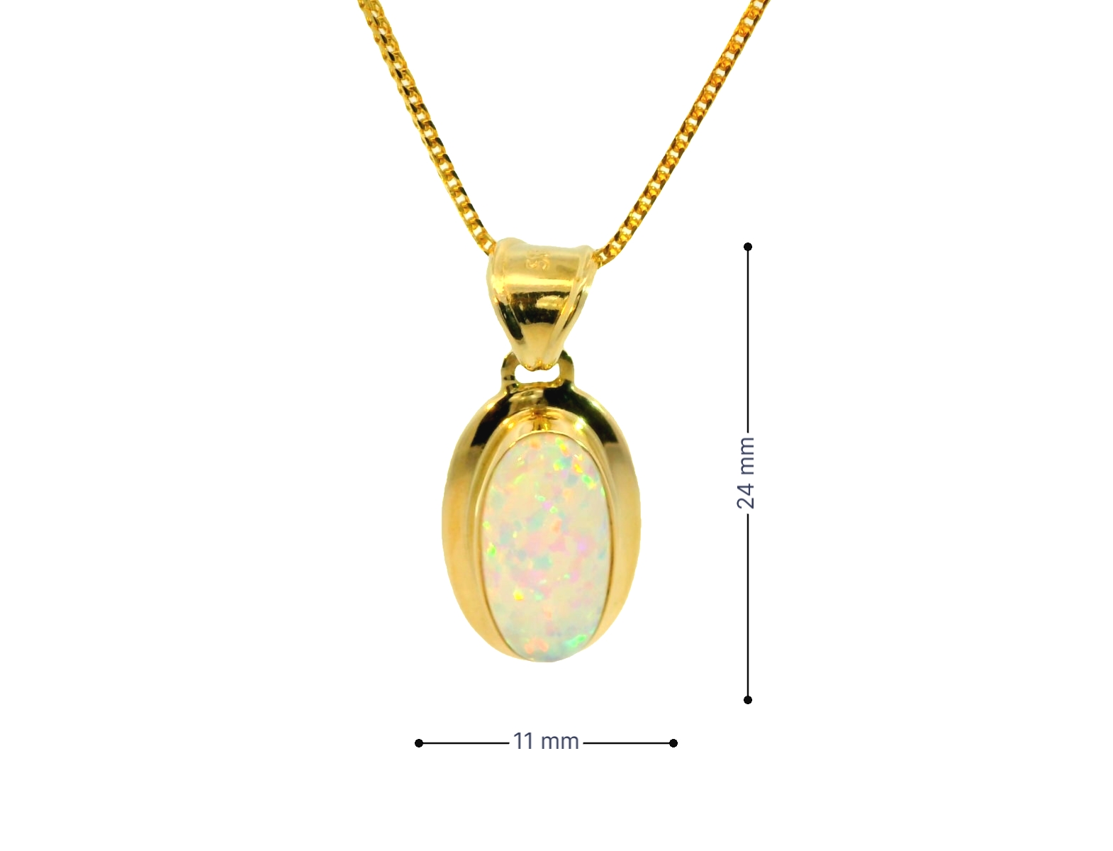 Deze prachtige geelgouden hanger van 14 karaat (2 gr) is perfect voor wie op zoek is naar een uniek sieraad met synthetisch opaal. De hanger heeft een stralende en kleurrijke uitstraling die direct in het oog springt. Draag hem aan een mooie gouden ketting voor een elegante look die perfect is voor elke gelegenheid. Voeg deze schitterende hanger toe aan je sieradencollectie en straal de hele dag door!