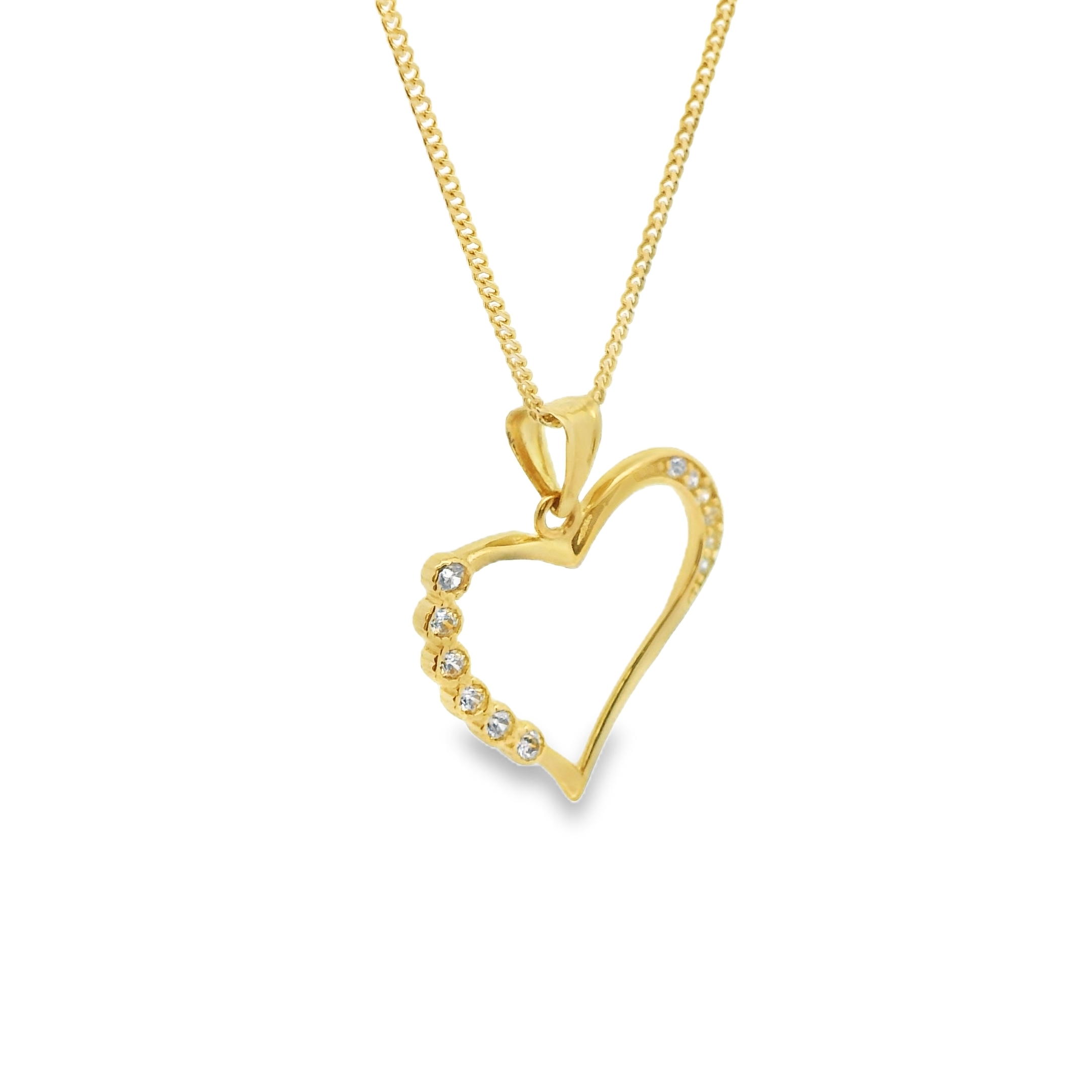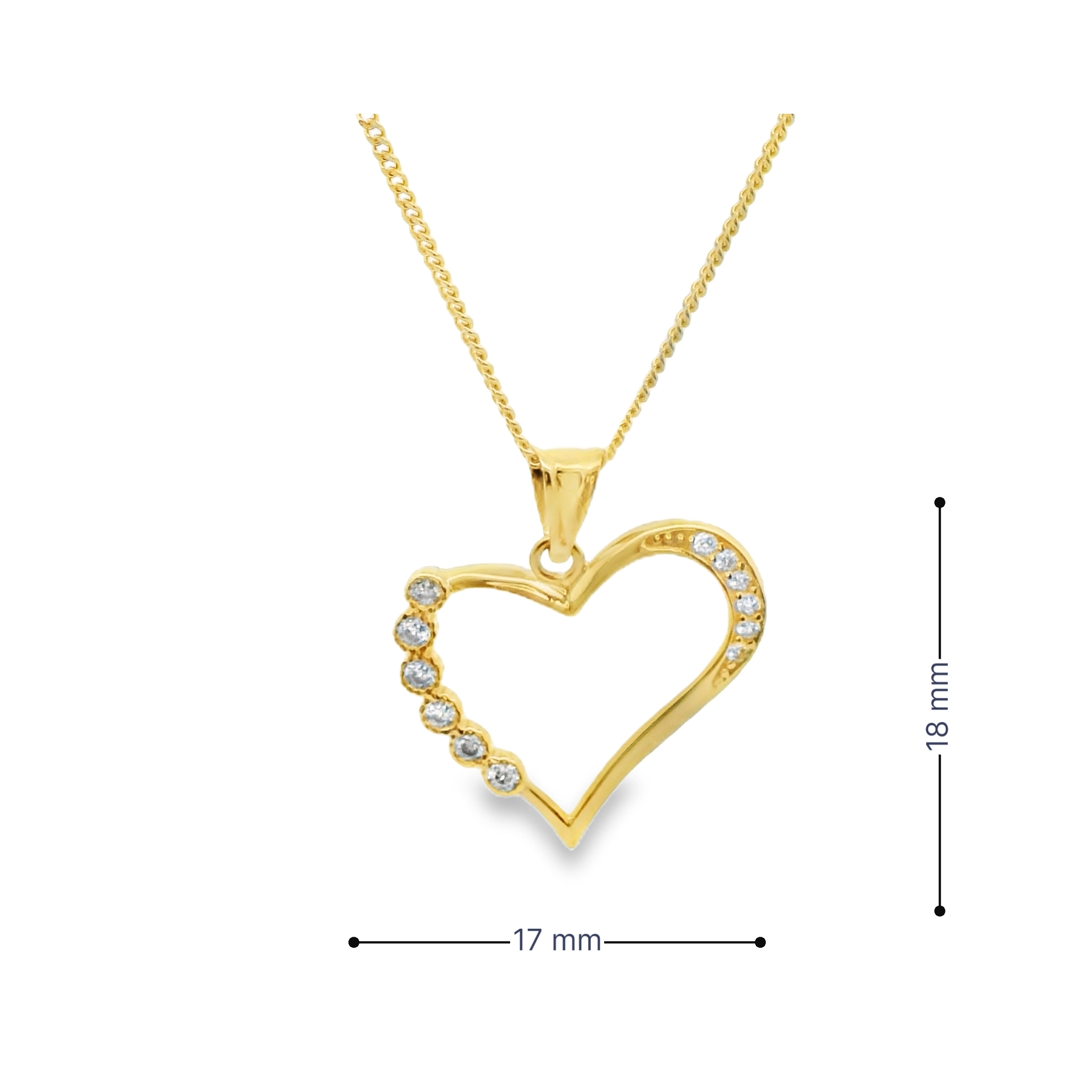 Deze hanger in de vorm van een hartje met zirkonia is een schitterend symbool van liefde en elegantie. De warme glans van het geelgoud gecombineerd met de sprankelende zirkonia maakt dit sieraad tot een echte blikvanger. Het hartje staat voor genegenheid en verbondenheid, terwijl de fonkelende zirkonia een vleugje luxe toevoegt. Dit tijdloze sieraad is perfect als cadeau voor een geliefde of als een persoonlijke accessoire om elke dag te dragen.