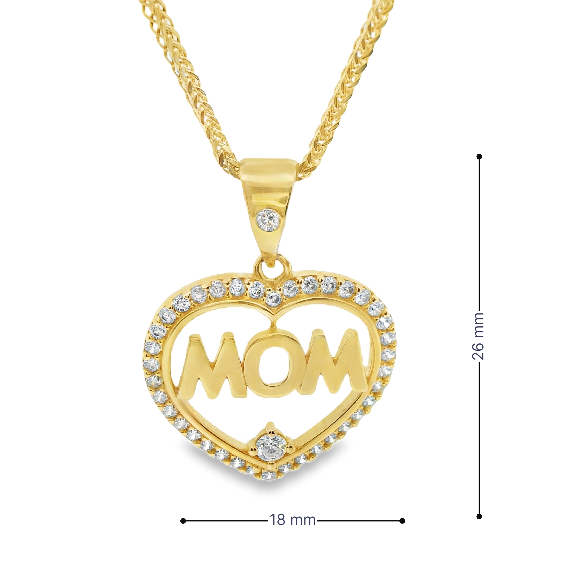 Deze hanger met zirkonia in de vorm van een hartje met het woord "Mom" is een prachtig en betekenisvol sieraad. De warme gloed van het geelgoud en de fonkelende zirkonia maken dit hangertje een perfect symbool van liefde en waardering voor moeder. Het hartje, als teken van genegenheid, gecombineerd met de elegante inscriptie "Mom", maakt deze hanger een emotioneel en stijlvol cadeau. Dit sieraad is een tijdloze manier om een bijzondere band te vieren en kan elke dag met trots gedragen worden.