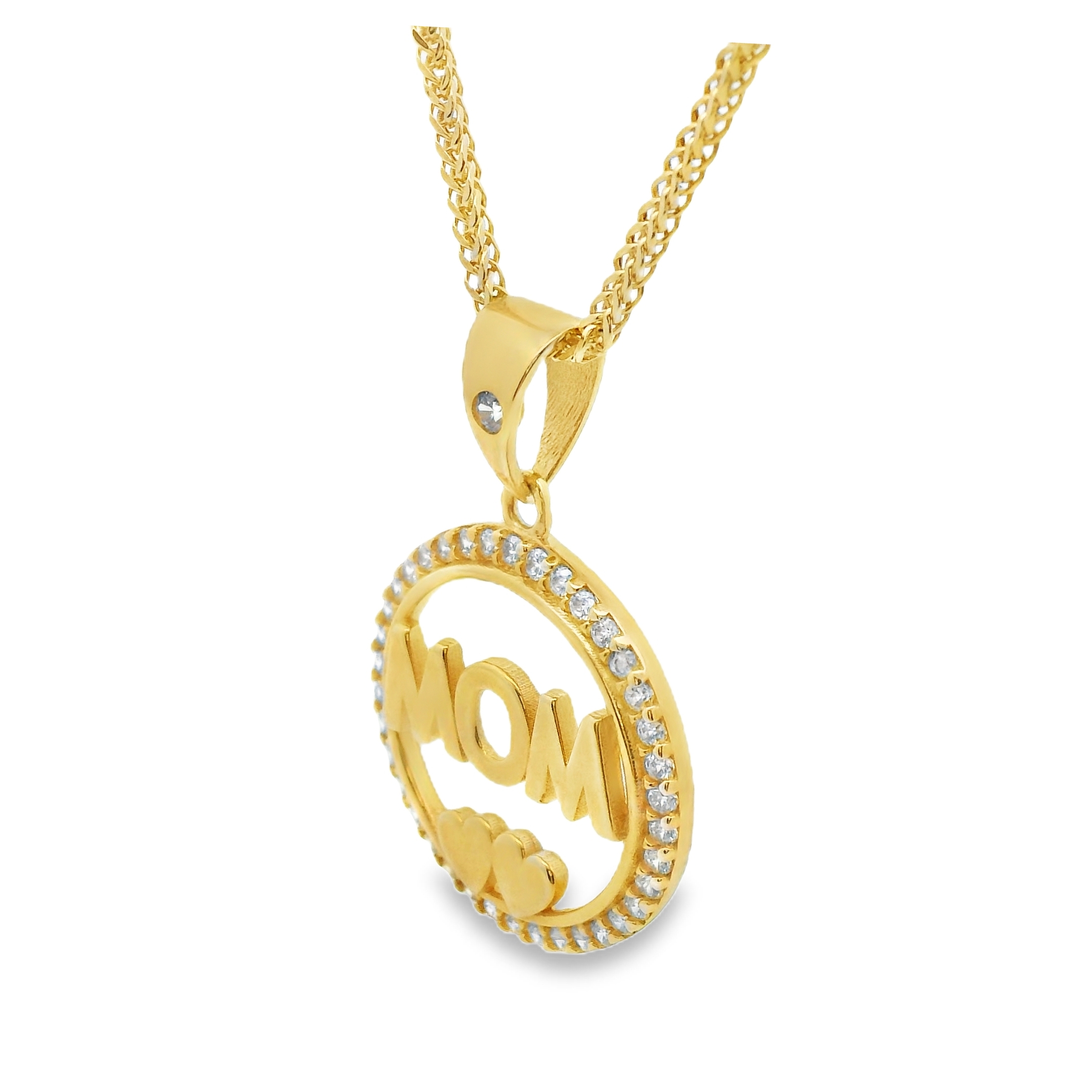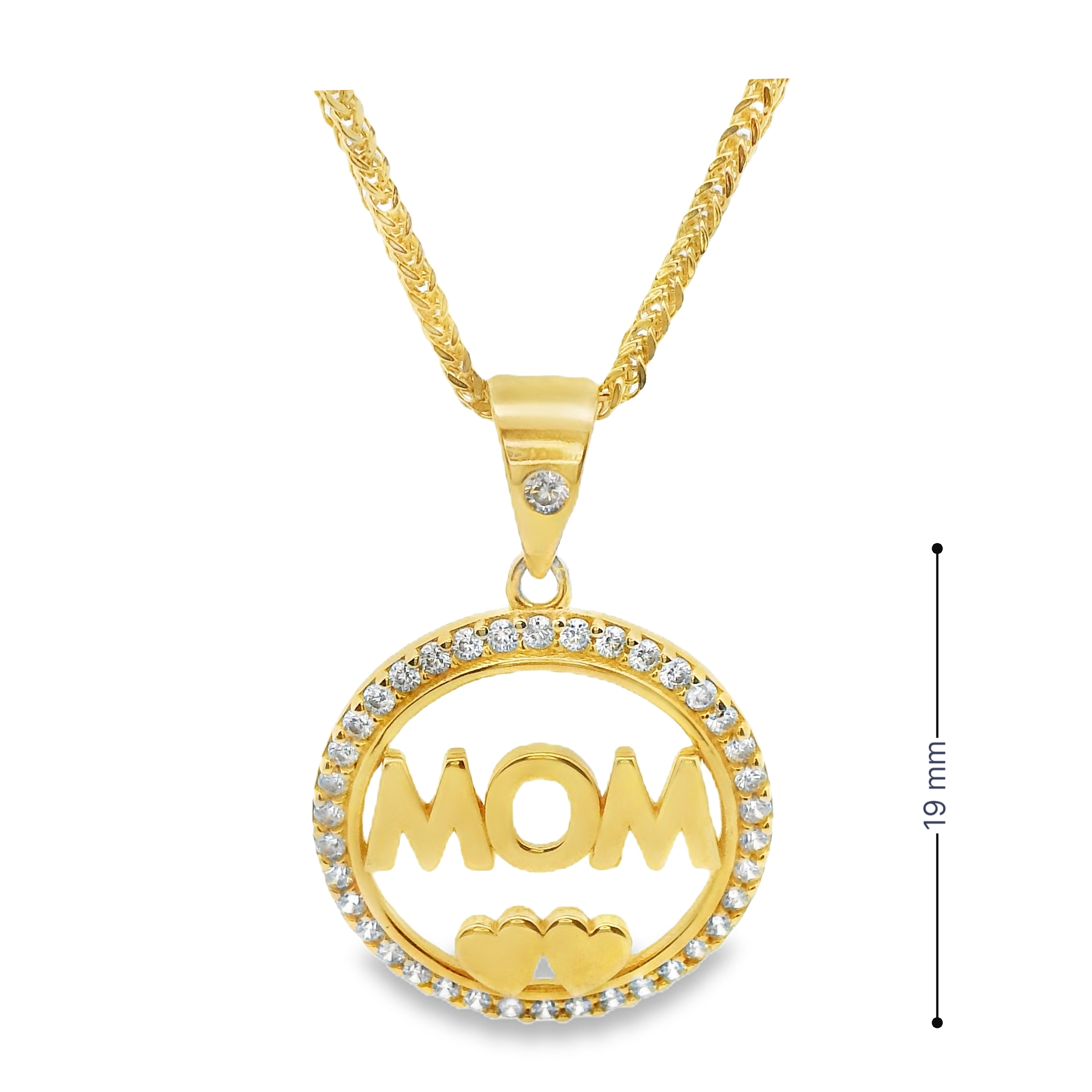 Deze hanger met "Mom" in het midden straalt elegantie en warmte uit. Het gladde, glanzende goud omlijst liefdevol het woord "Mom", een eerbetoon aan een speciale vrouw. De hanger vangt het licht prachtig en voegt een vleugje luxe toe aan elke outfit. Perfect om cadeau te geven of als symbolische herinnering aan de diepe band tussen moeder en kind.