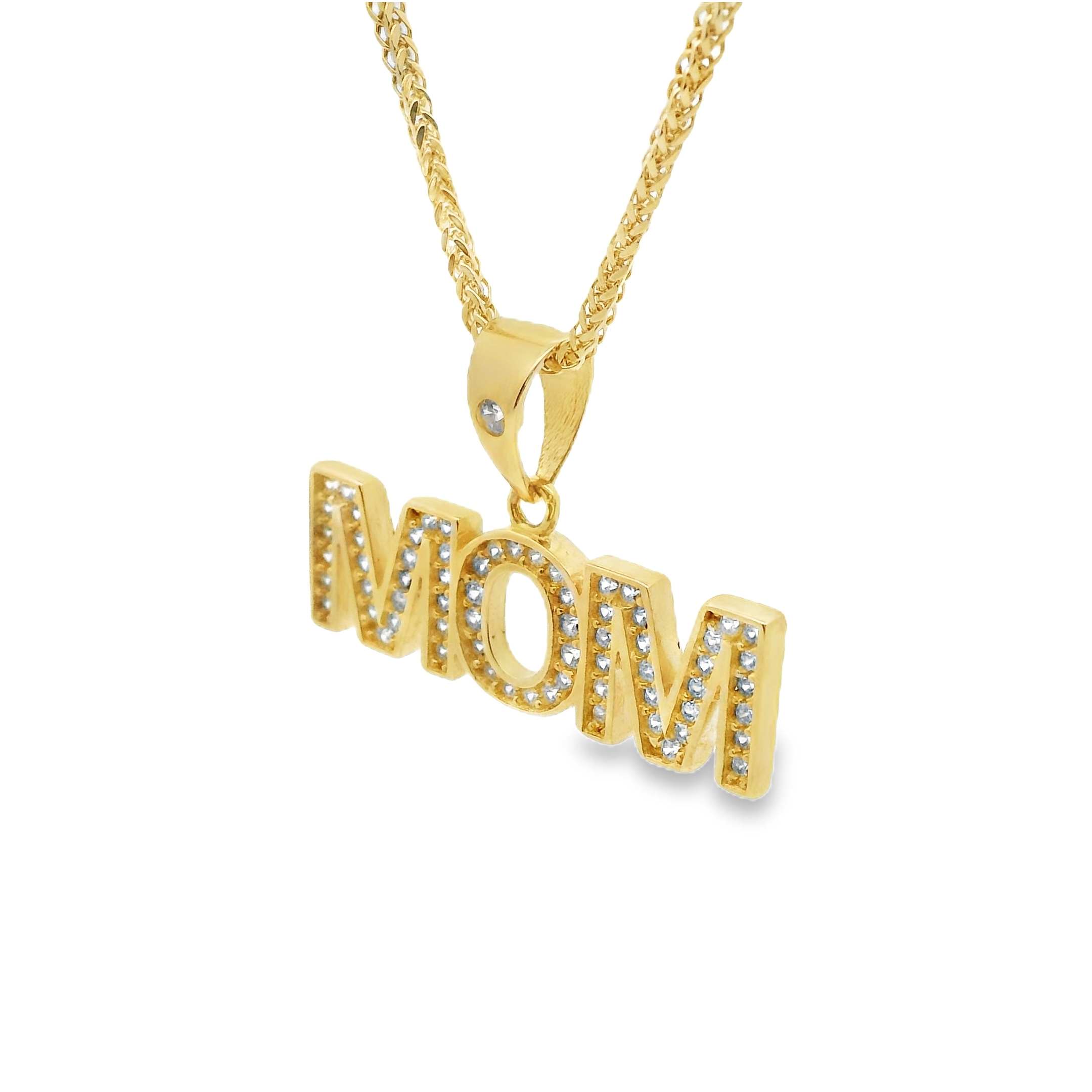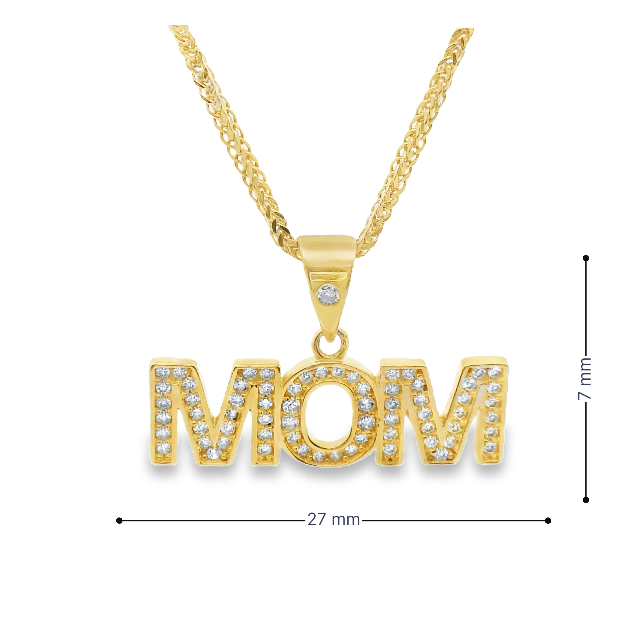 Deze hanger met "Mom" en zirkonia combineert tijdloze elegantie met een sprankelende touch. Het stralende goud omlijst liefdevol het woord "Mom", terwijl de glinsterende zirkonia-steentjes een schitterend accent toevoegen. Deze hanger is een perfect symbool van waardering en liefde, een betekenisvol sieraad dat elke moeder met trots zal dragen.