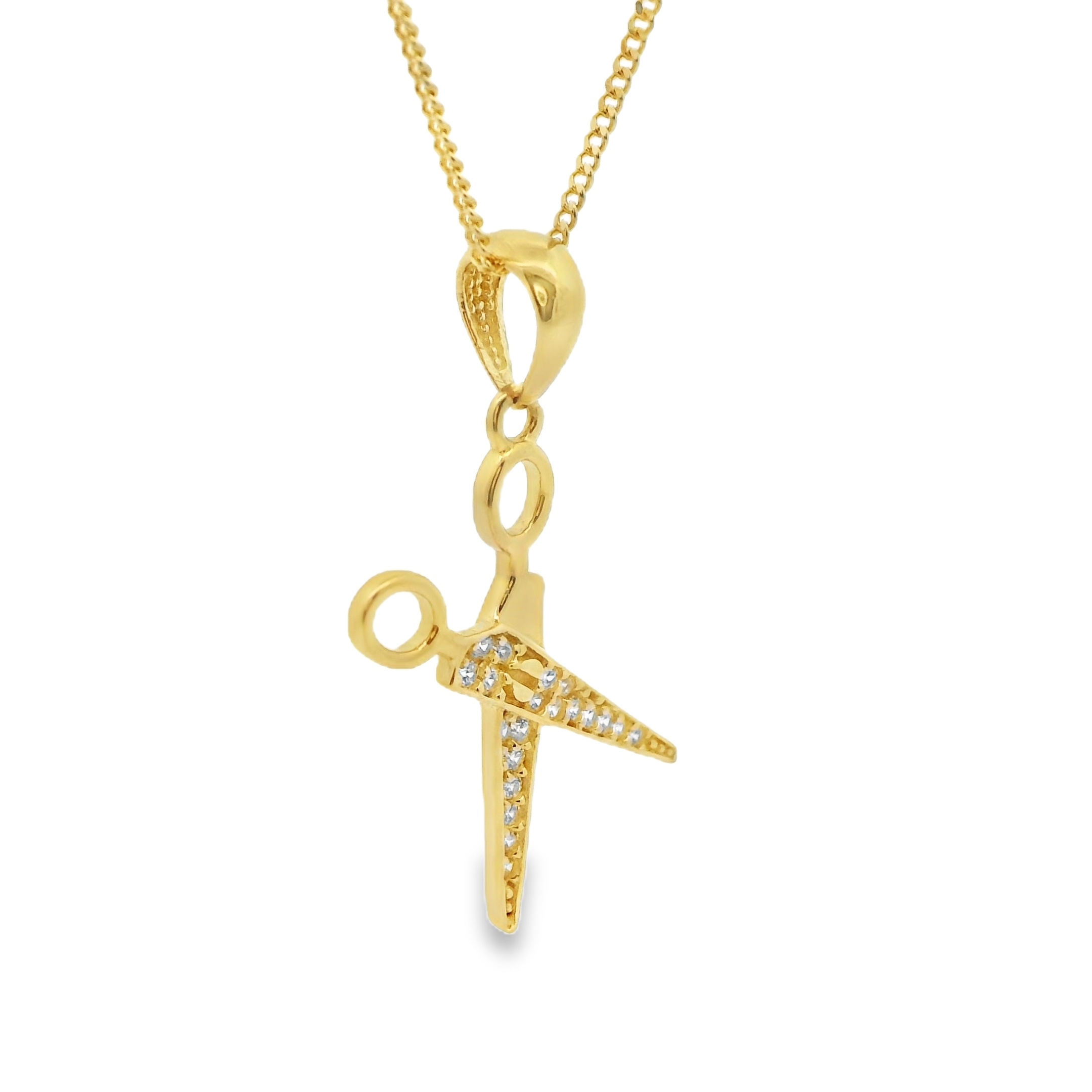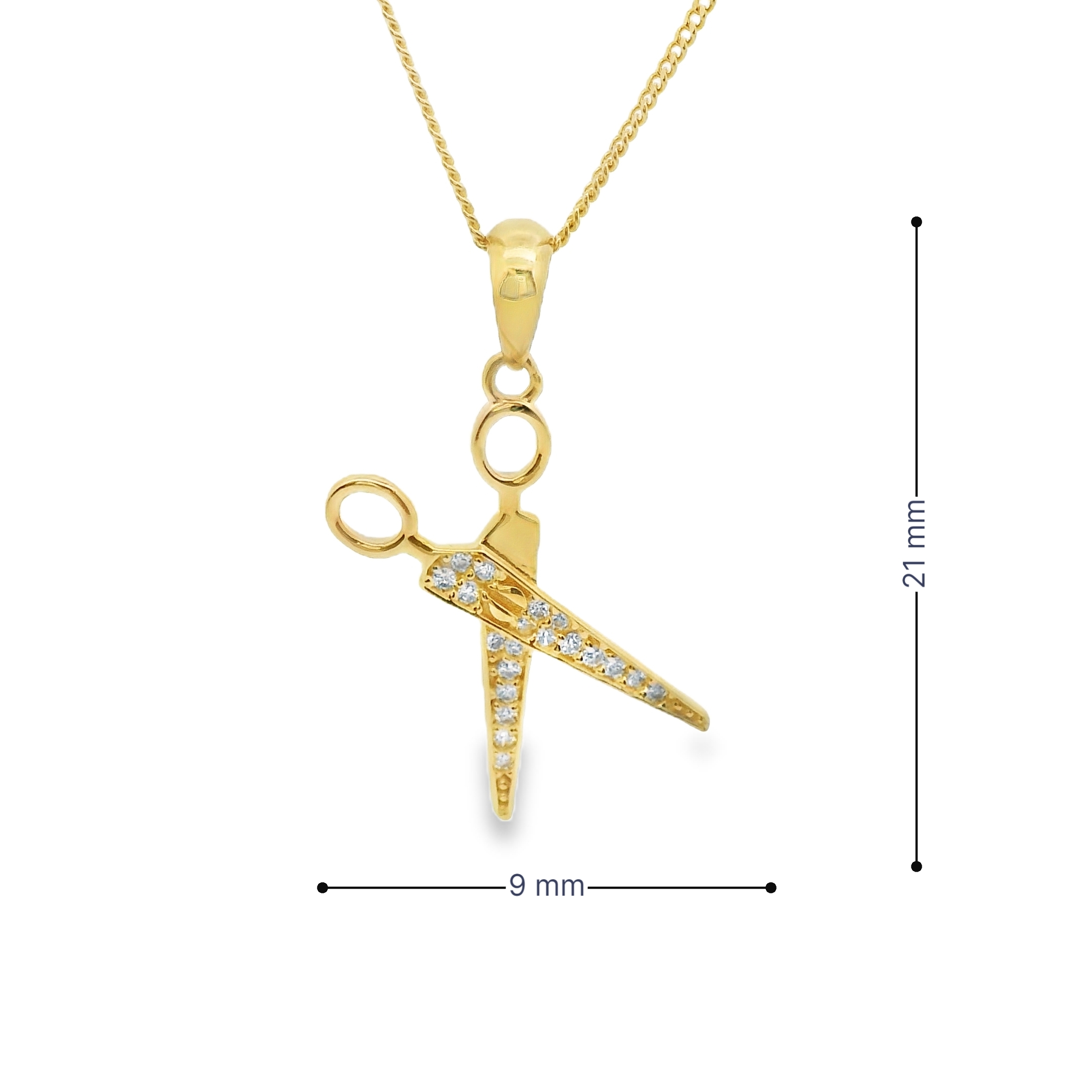 Deze hanger in de vorm van een schaar, versierd met zirkonia, is een uniek en stijlvol sieraad. De sprankelende zirkonia's geven de hanger een vleugje glamour, terwijl de schaar symbool staat voor creativiteit, precisie en vakmanschap. Dit opvallende sieraad is perfect voor wie een passie voor mode, kunst of ambacht wil uitdrukken, en voegt een persoonlijk en speels accent toe aan elke outfit.