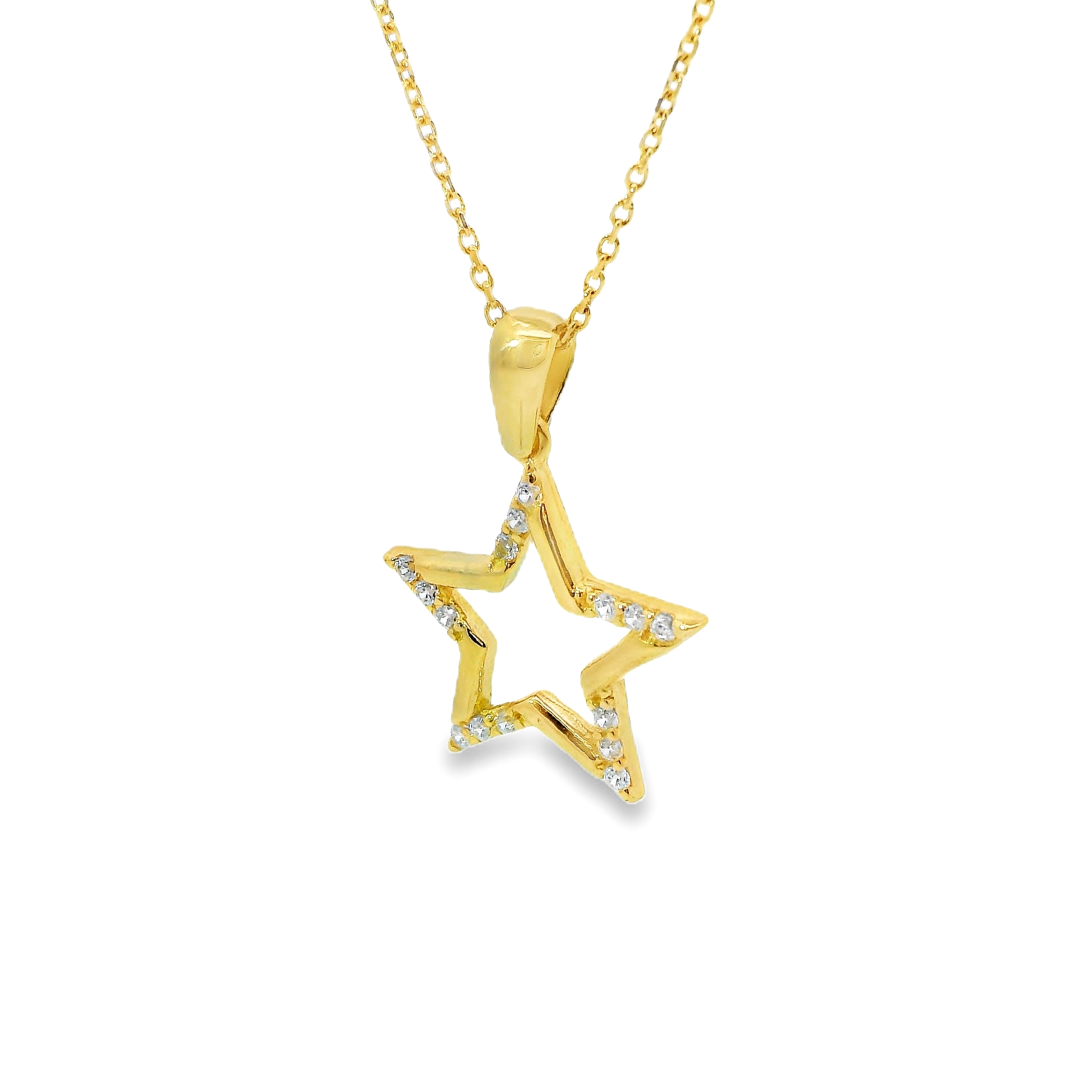 Deze elegante hanger heeft een schitterende zirkonia in de vorm van een ster. De warme glans van het geelgoud combineert perfect met de heldere schittering van de zirkonia, wat de hanger een tijdloze en stijlvolle uitstraling geeft. Ideaal om zowel dagelijks als bij speciale gelegenheden te dragen, voegt deze hanger een subtiel vleugje luxe en elegantie toe aan elke outfit.