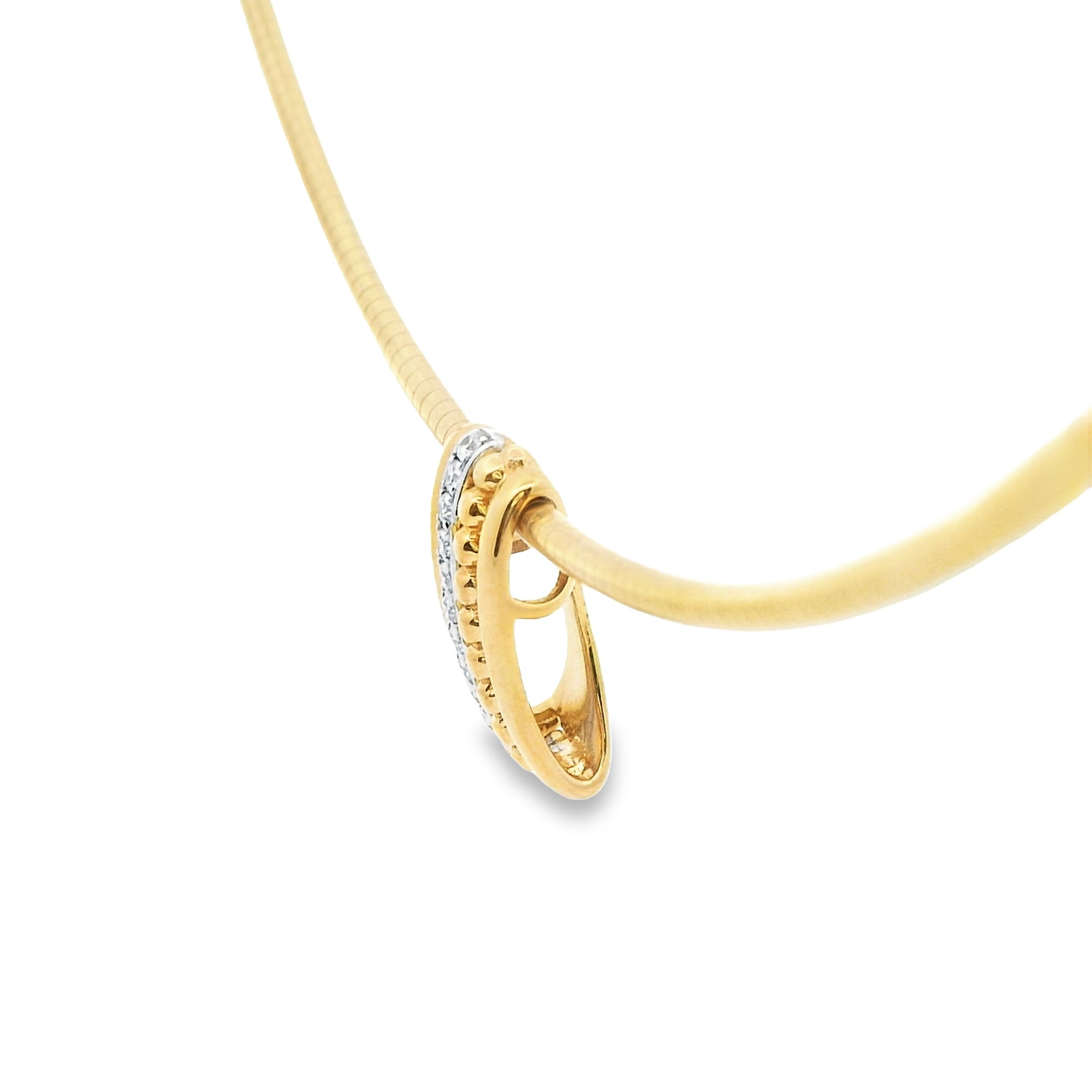 Deze hanger van Louis Bros is vervaardigd uit 14 karaat geelgoud met wit rhodium (1.82.gr.) en is gezet met 10 briljant geslepen diamanten met een totaalgewicht van 0.10 ct. De hanger heeft een diameter van 15.5 mm en een breedte van 8 mm. En een dikte van 5.5 mm.  Deze hanger combineert de warmte van geelgoud met de verfijning van wit rhodium. Het geelgoud geeft de hanger een klassieke uitstraling, terwijl het witte rhodium een moderne twist toevoegt. De diamanten voegen een prachtige sprankeling toe en maken deze hanger extra bijzonder. Of je deze hanger nu draagt voor een speciale gelegenheid of als een dagelijks sieraad, het zal zeker de aandacht trekken en je laten stralen. Het is een perfecte mix van stijl en elegantie.