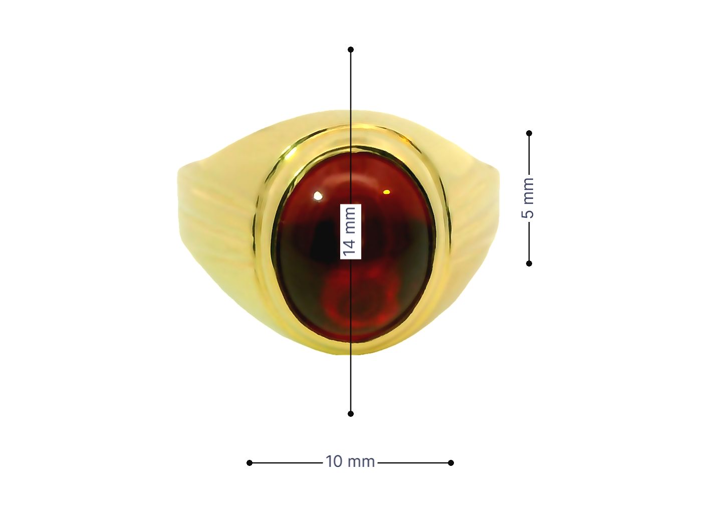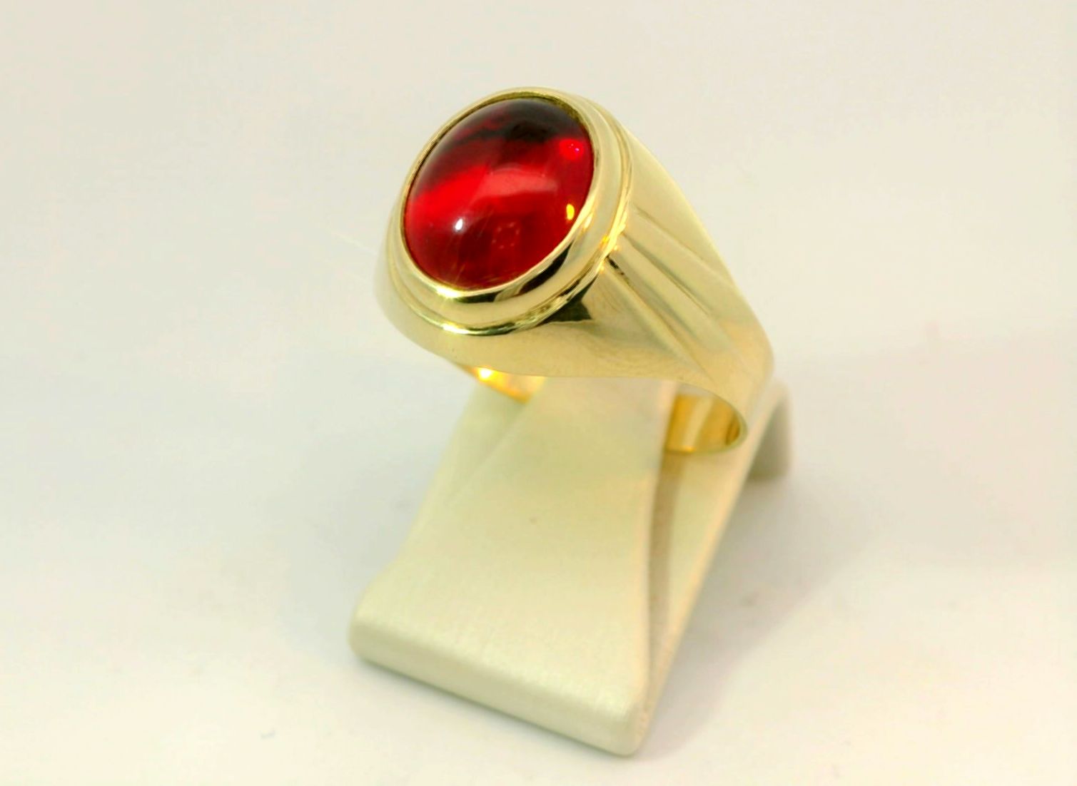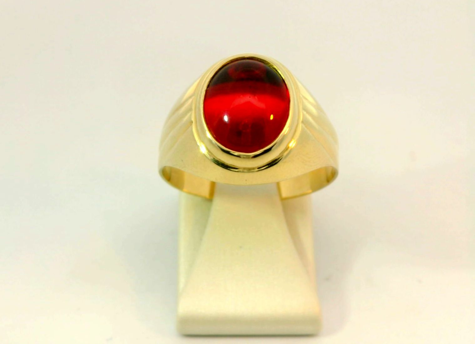 Deze geelgouden herenring van 14 karaat is voorzien van een prachtig rood steentje. De ring heeft een tijdloos en stijlvol ontwerp dat perfect is voor dagelijks gebruik of speciale gelegenheden. Draag deze ring alleen of combineer met andere sieraden voor een unieke look. Een geweldige aanvulling op elke sieradencollectie. Bestel nu en draag deze ring met trots!