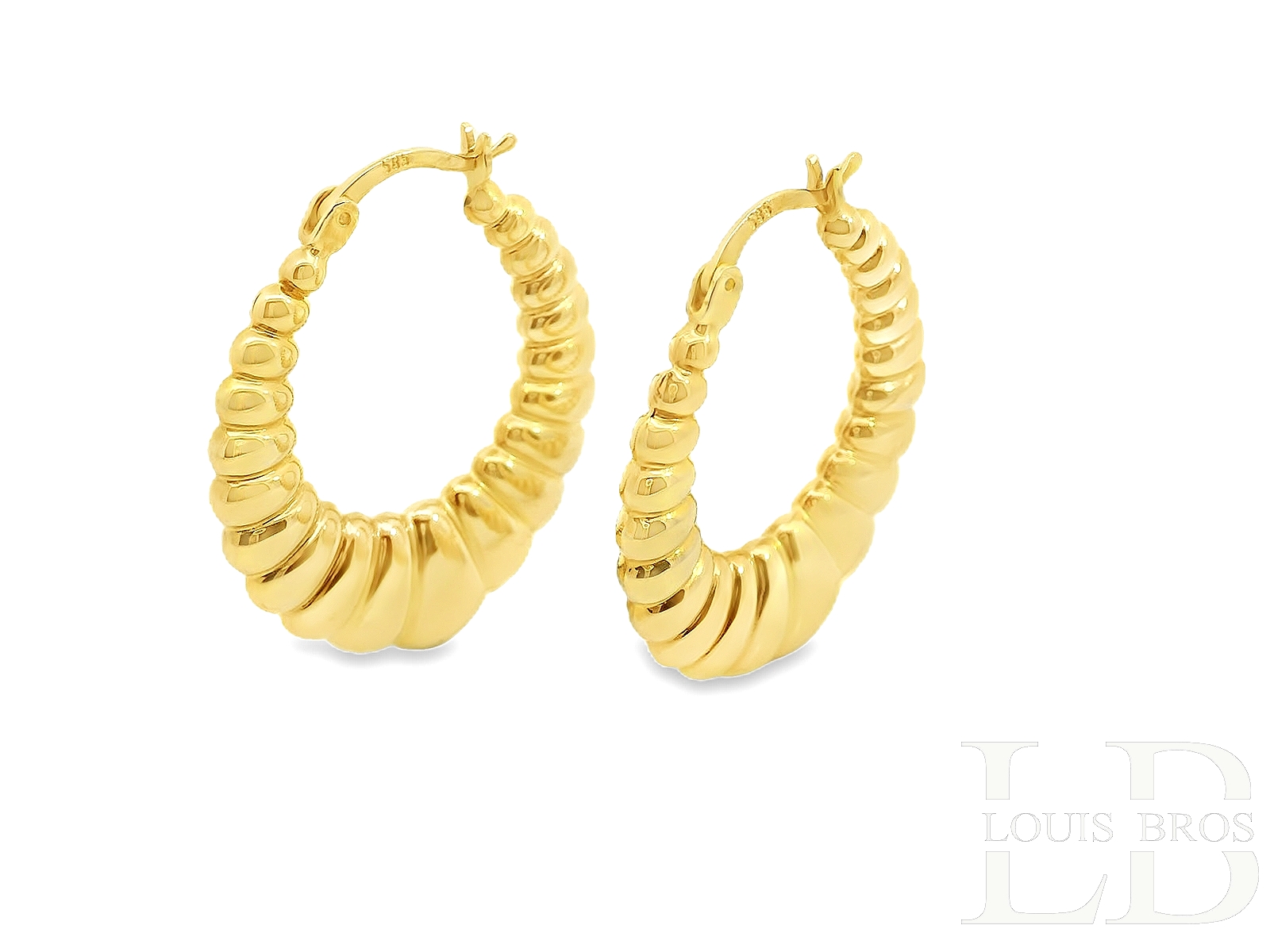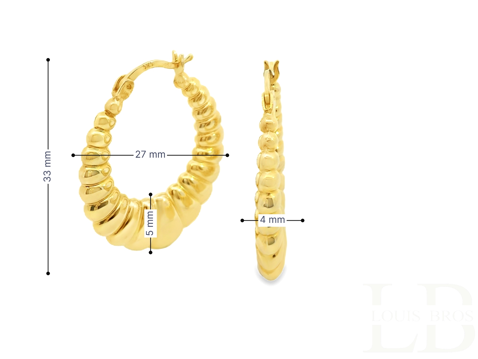 Deze elegante 14 karaat geelgouden oorbellen (4.05 gr) hebben een opvallend gedraaid en bolvormig ontwerp, wat zorgt voor een luxe en unieke uitstraling. De gedetailleerde afwerking en hoogglanspolijsting geven de oorbellen een stralende glans. Dankzij de stevige scharniersluiting zijn ze comfortabel en veilig om te dragen. Deze tijdloze oorringen zijn perfect voor zowel dagelijkse elegantie als speciale gelegenheden en vormen een prachtige aanvulling op elke sieradencollectie.